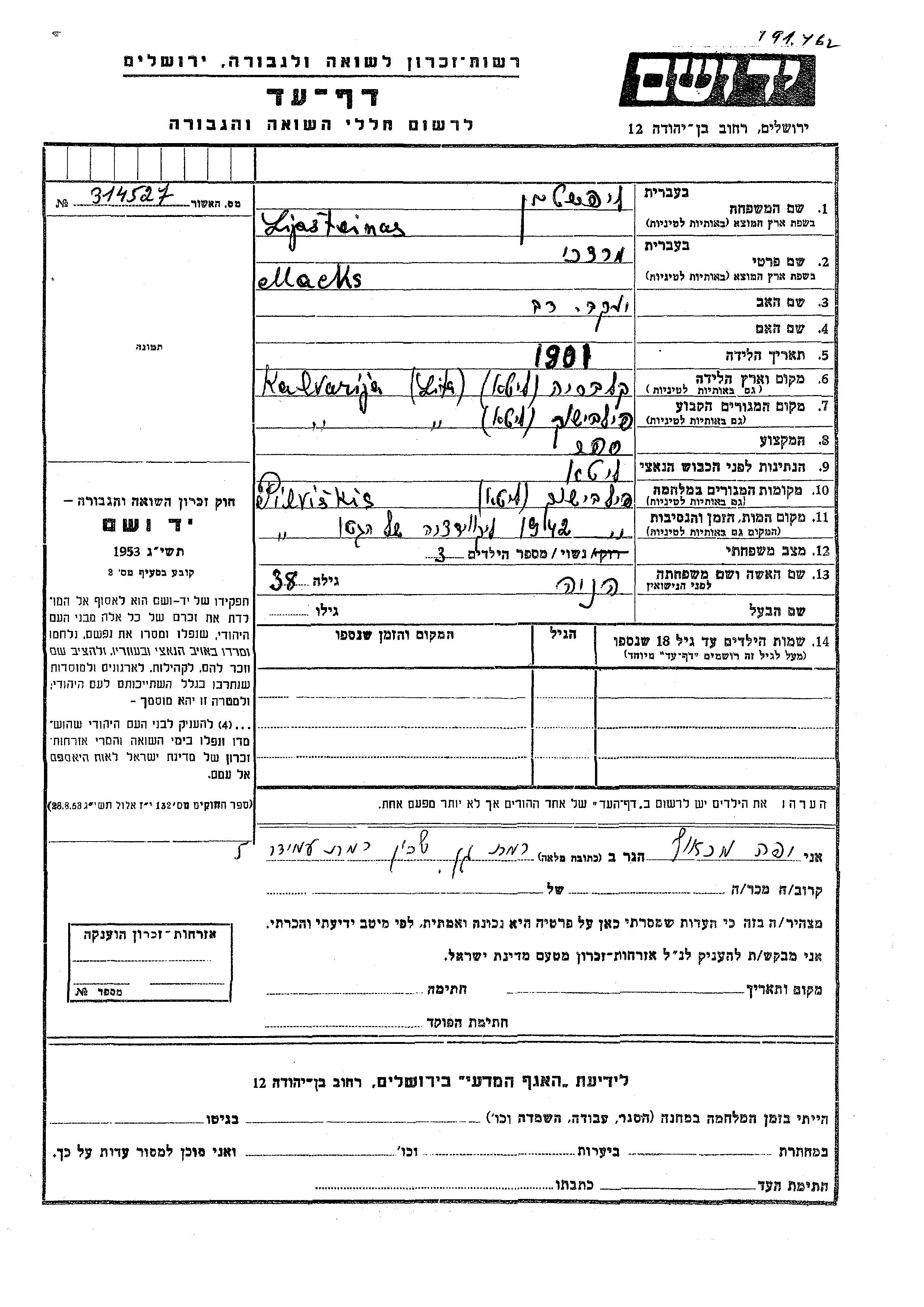 Macks Mordekhai wurde in der Schoah ermordet. Todesort: Pilviskis, Litauen im Jahr 1942.