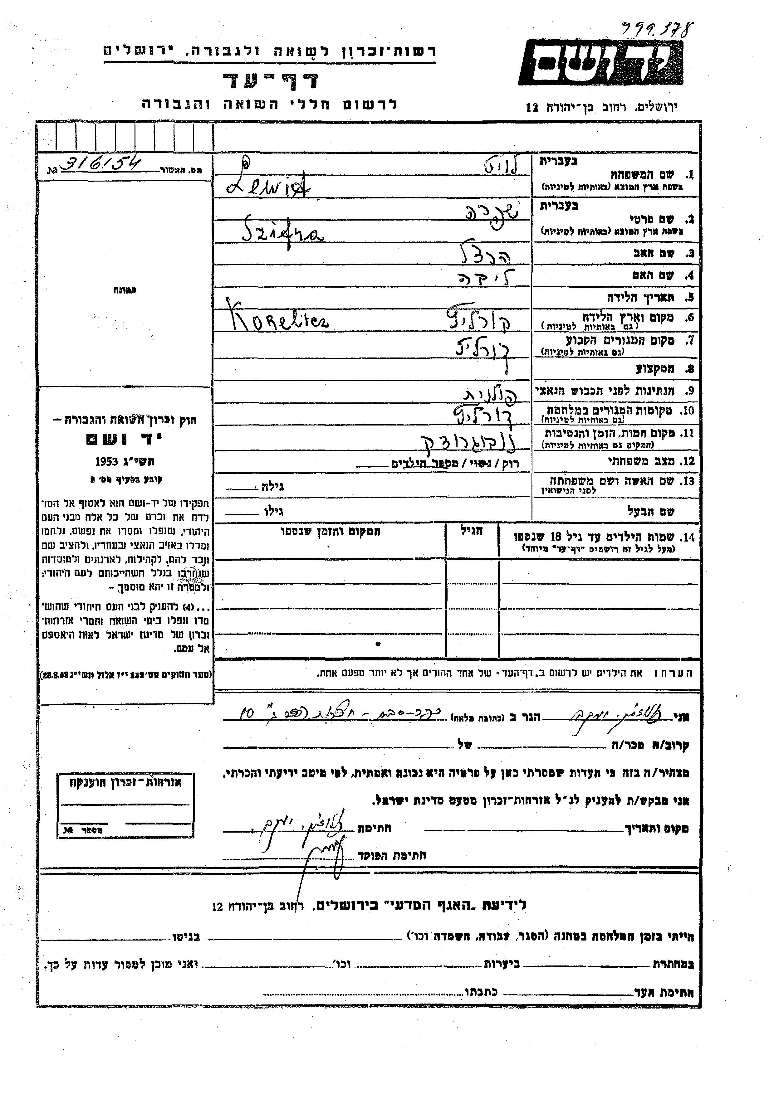 Szifra Levit wurde in Korelitz, Polen geboren. Sie war die Tochter von Hertzel und Liba. Sie war Ledig. Vor dem Zweiten Weltkrieg lebte sie in Korelitz, Polen. Während des Krieges war sie in Korelitz, Polen.