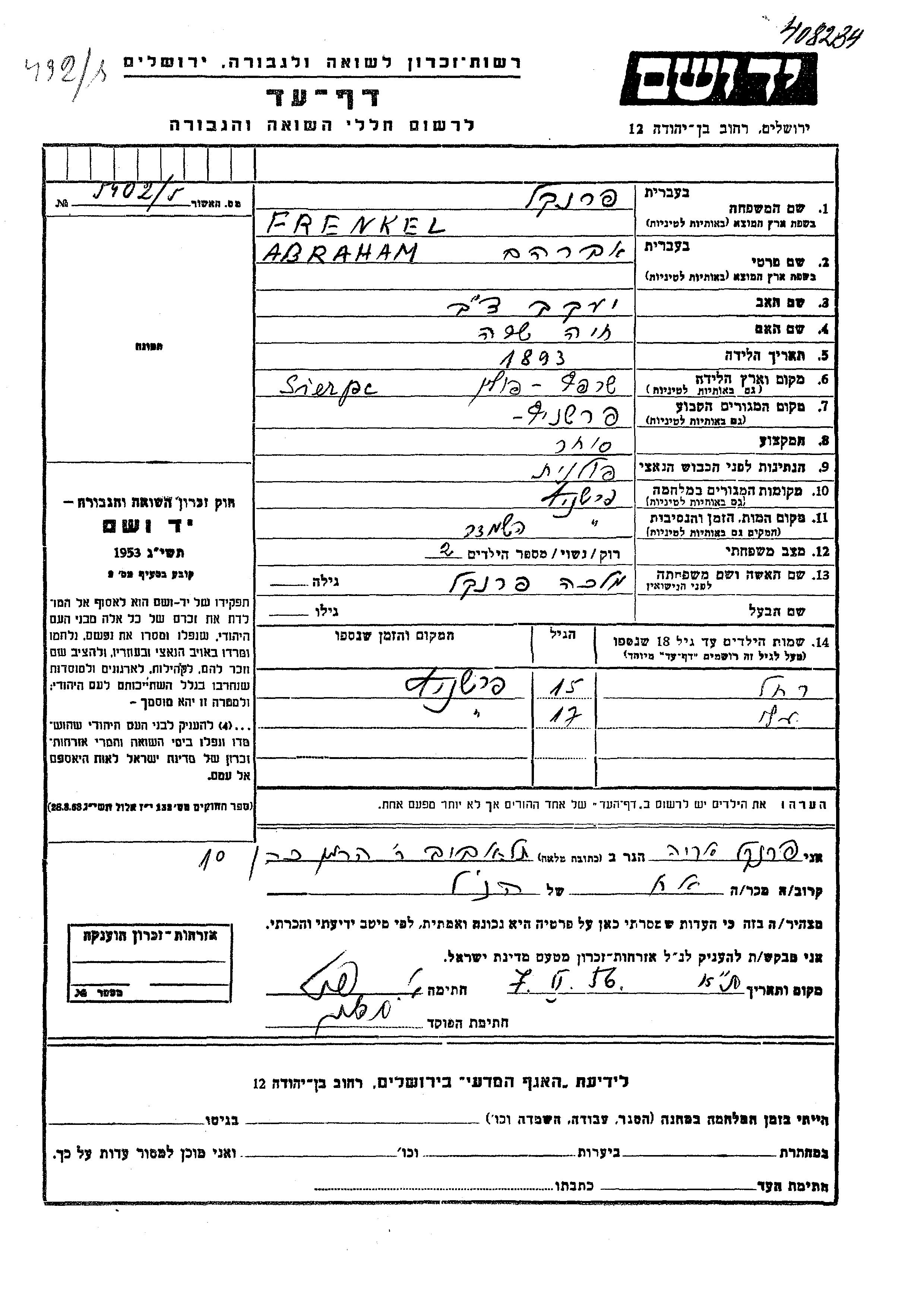 Frenkel Rakhel Prasznic, Polen Gedenkblatt