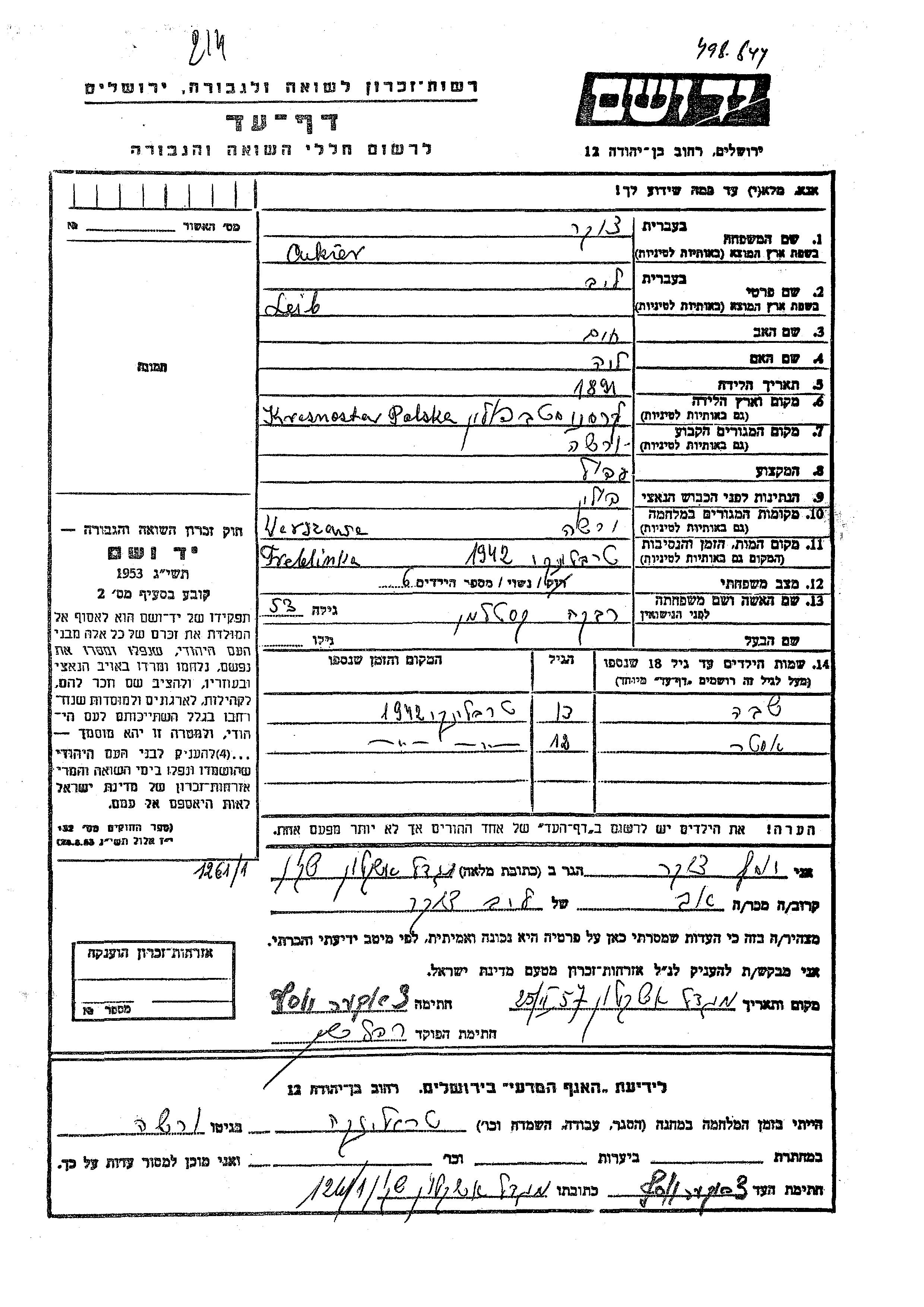 Sheva Cuker wurde Er/sie war der/ die Sohn/Tochter von Leib und Rivka, geb. Kestelman. Er/Sie war Kind. Vor dem Zweiten Weltkrieg er/sie in Warsaw, Polen. Während des Krieges war er/sie in Warsaw, Polen. Sheva wurde in der Schoah ermordet.