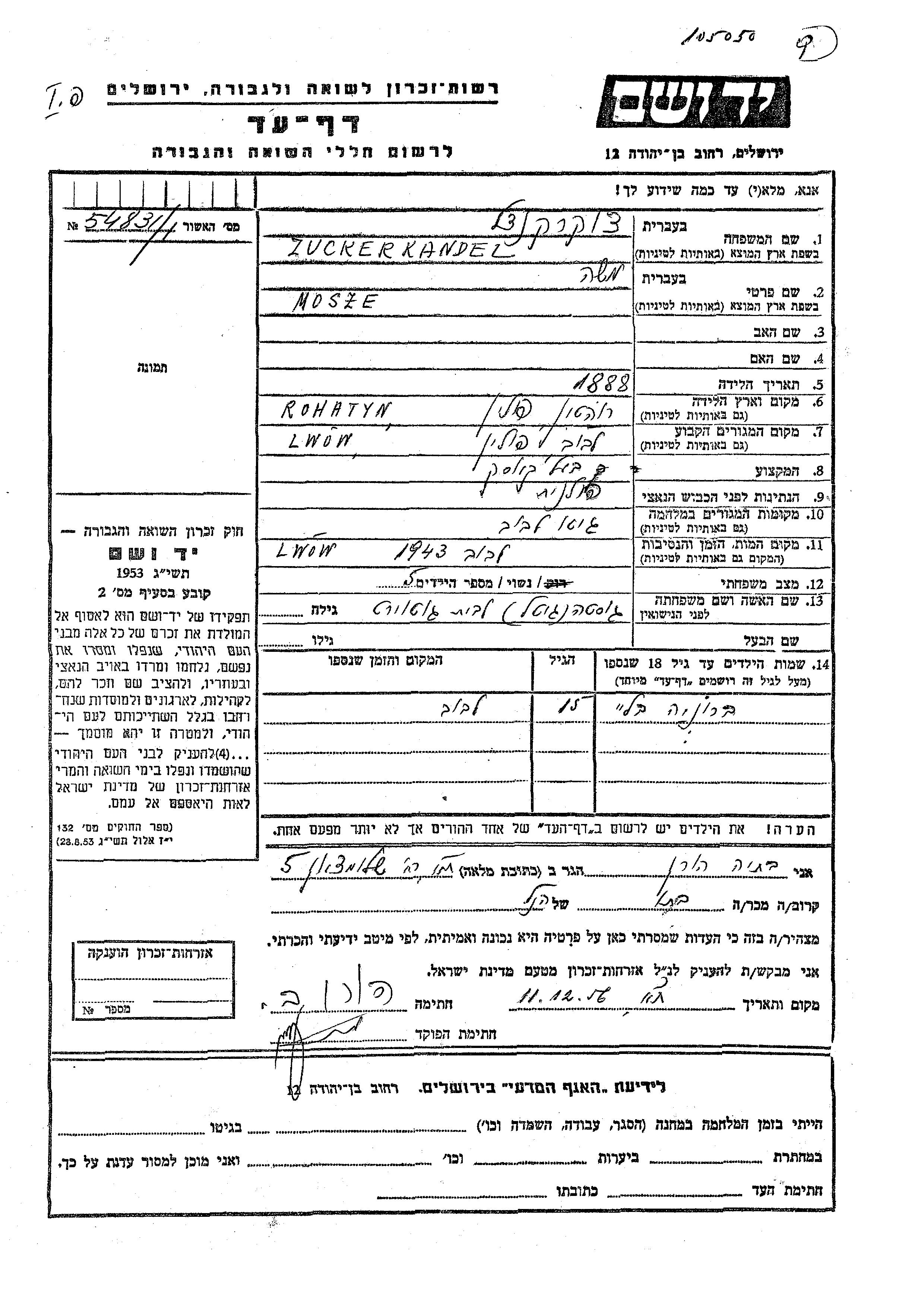 Bronia Belei Zuckerkandel wurde Sie war die Tochter von Mosze und Gusta Gitel, geb. Gutvirt. Sie war Kind. Vor dem Zweiten Weltkrieg lebte sie in Lwow, Polen. Während des Krieges war sie in Lwow, Polen.
