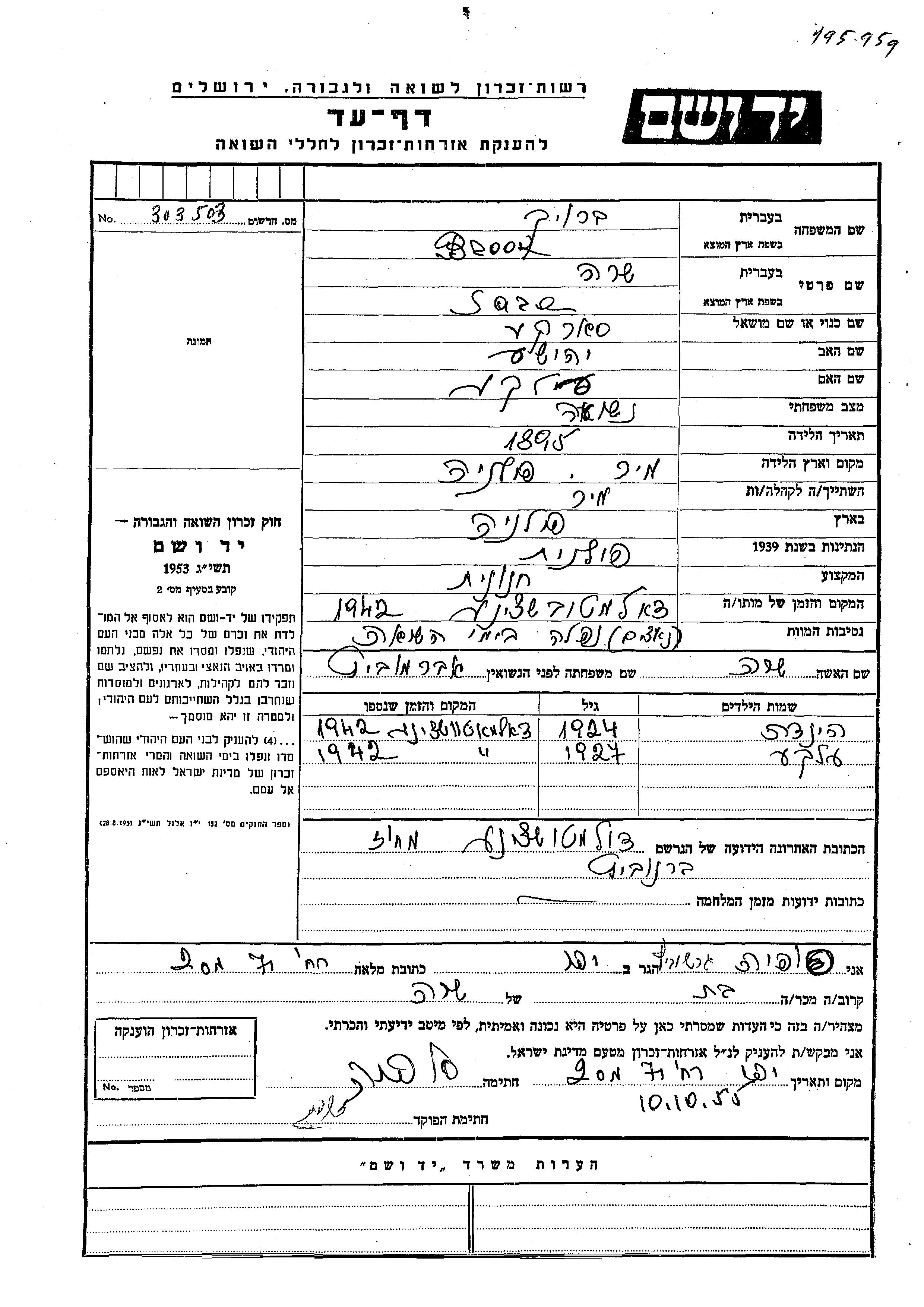 Hinda Brook wurde im Jahr 1924 geboren. Sie war die Tochter von Sara und Sara, geb. Abramovitz. Sie war Kind. Vor dem Zweiten Weltkrieg lebte sie in Mir, Polen.