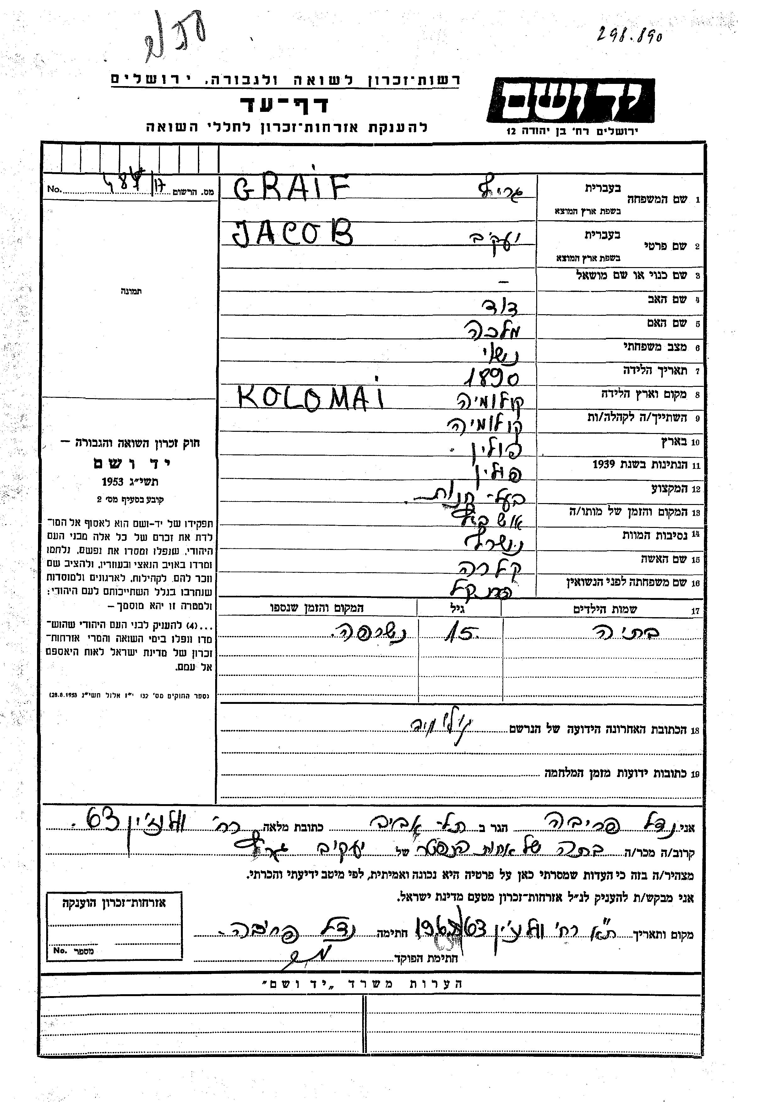 Batia Graif Grif wurde Sie war die Tochter von Jacob und Klara, geb. Frenkel. Sie war Jugendliche/-r. Vor dem Zweiten Weltkrieg lebte sie in Kolomyja, Polen. Während des Krieges war sie in Kolomyja, Polen.