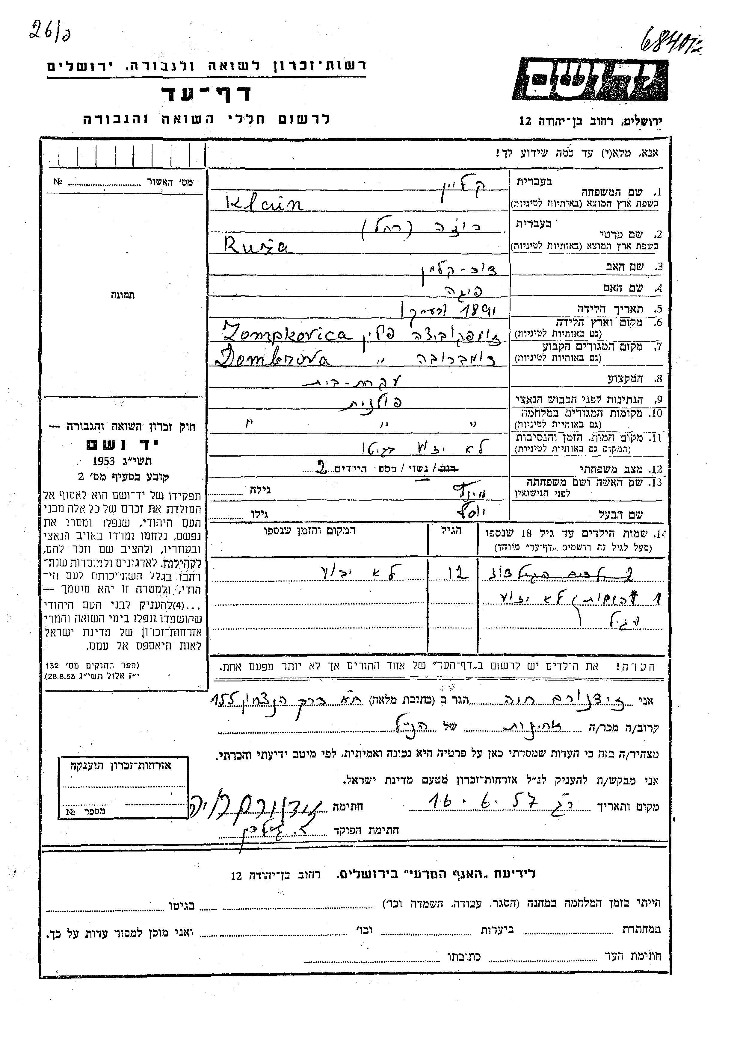 David Klain wurde Er war der Sohn von Yosef und Ruza Rakhel, geb. Mintz. Er war Kind. Vor dem Zweiten Weltkrieg lebte er in Dombrova, Polen. Während des Krieges war er in Dombrova, Polen.