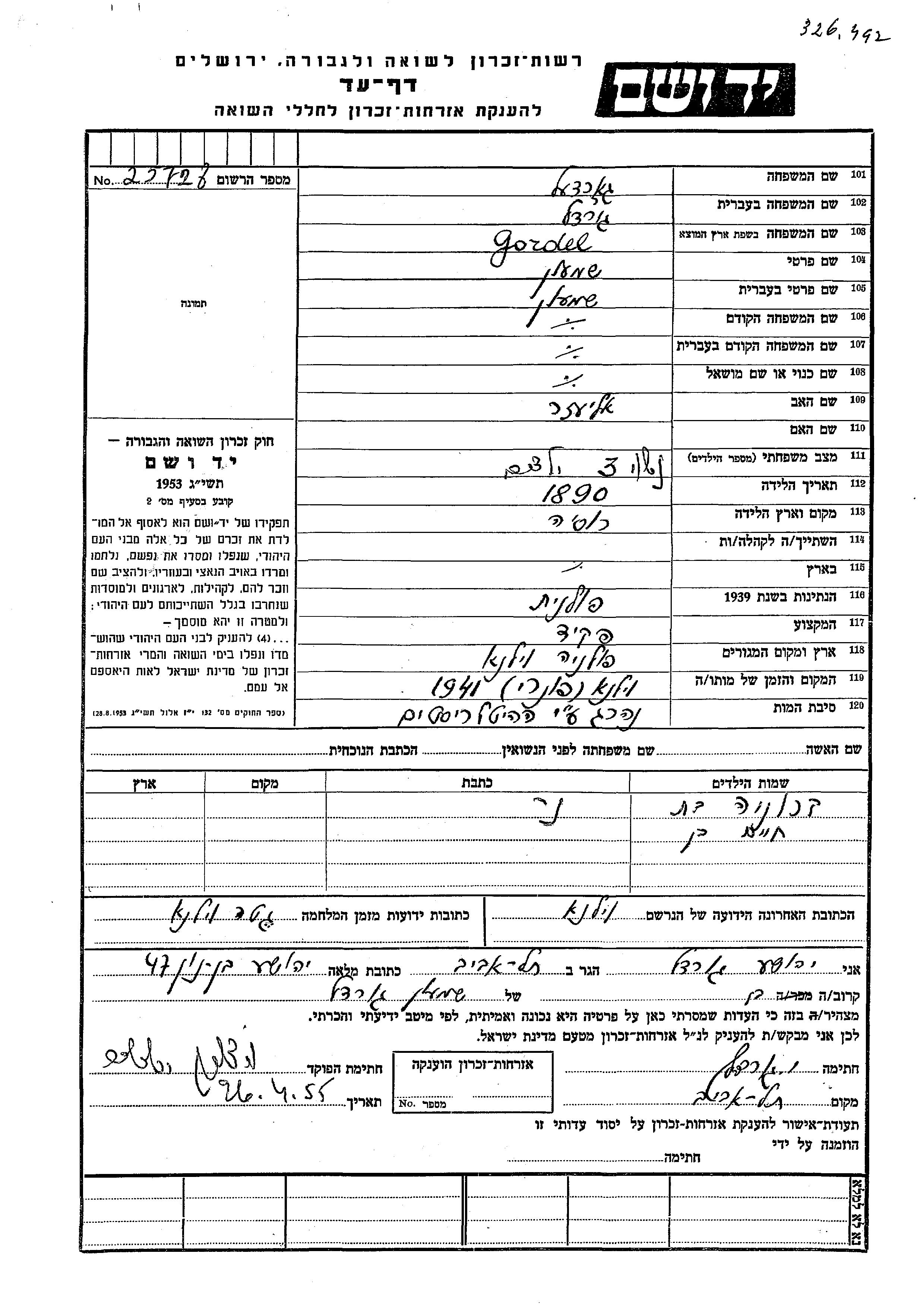 Khaim Gordel wurde Er war der Sohn von Shimon. Er war Kind. Vor dem Zweiten Weltkrieg lebte er in Russland (UdSSR). Während des Krieges war er in Wilna, Polen.