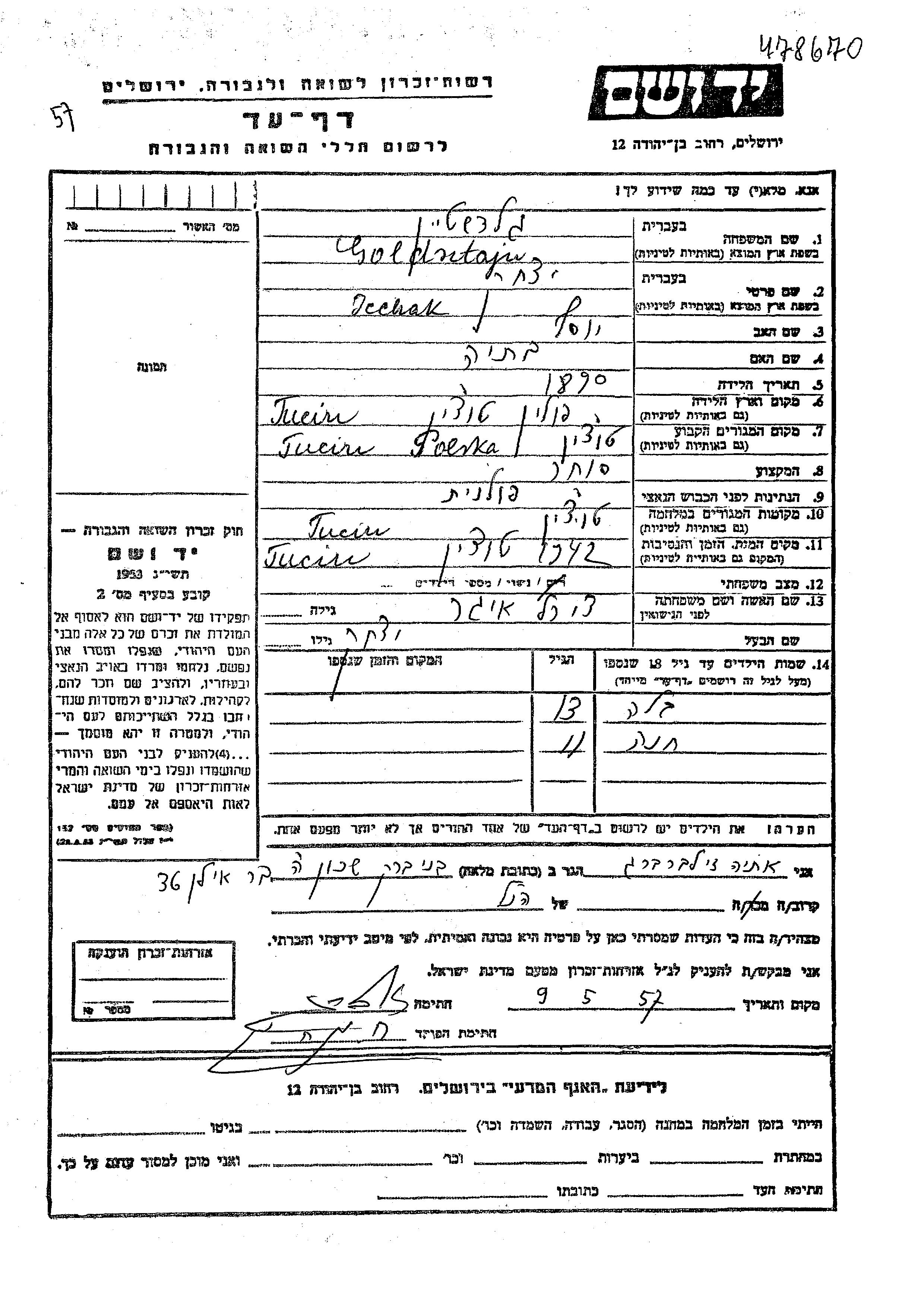 Goldsztajn Gladshtein Khana Tucin, Polen Gedenkblatt
