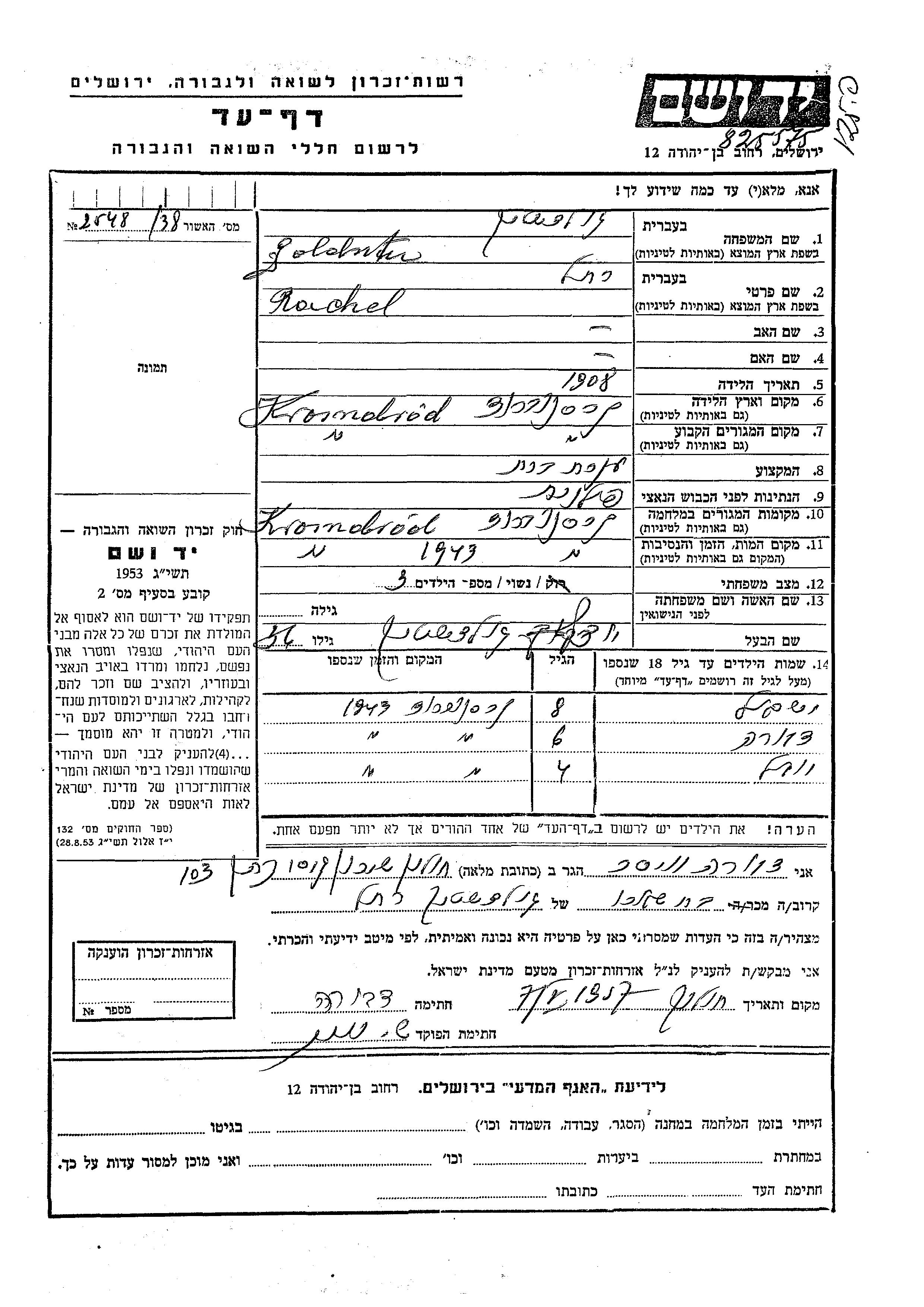 Yisrael Goldstein wurde Er war der Sohn von Rachel. Er war Kind. Vor dem Zweiten Weltkrieg lebte er in Krasnobrod, Polen. Während des Krieges war er in Krasnobrod, Polen.