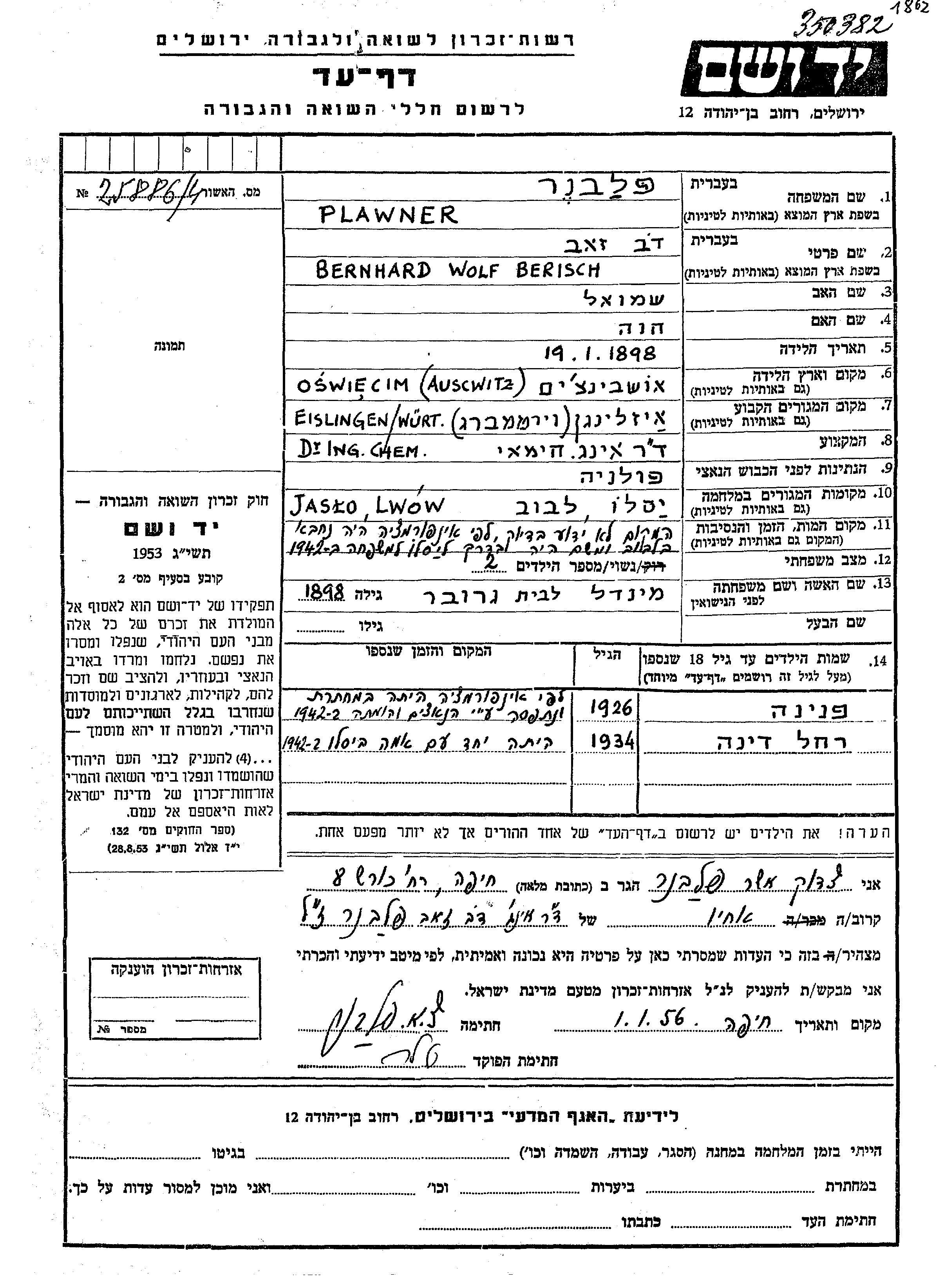 Plawner Felabaner Rakhel Dina Eislingen, Deutsches Reich Gedenkblatt