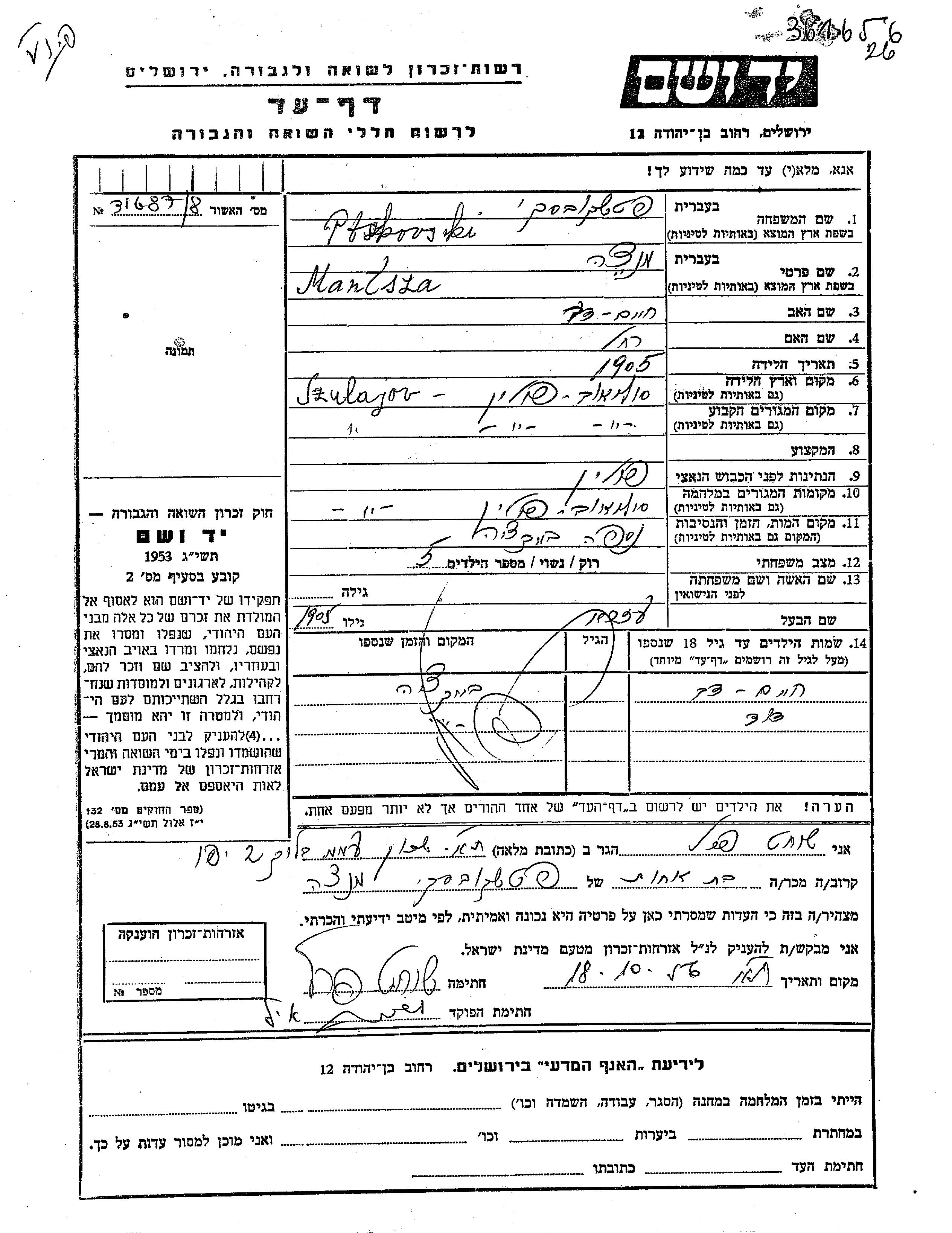 David Ptskovski wurde Er war der Sohn von Ezra und Mantze. Er war Kind. Vor dem Zweiten Weltkrieg lebte er in Sulejow, Polen. Während des Krieges war er in Sulejow, Polen.