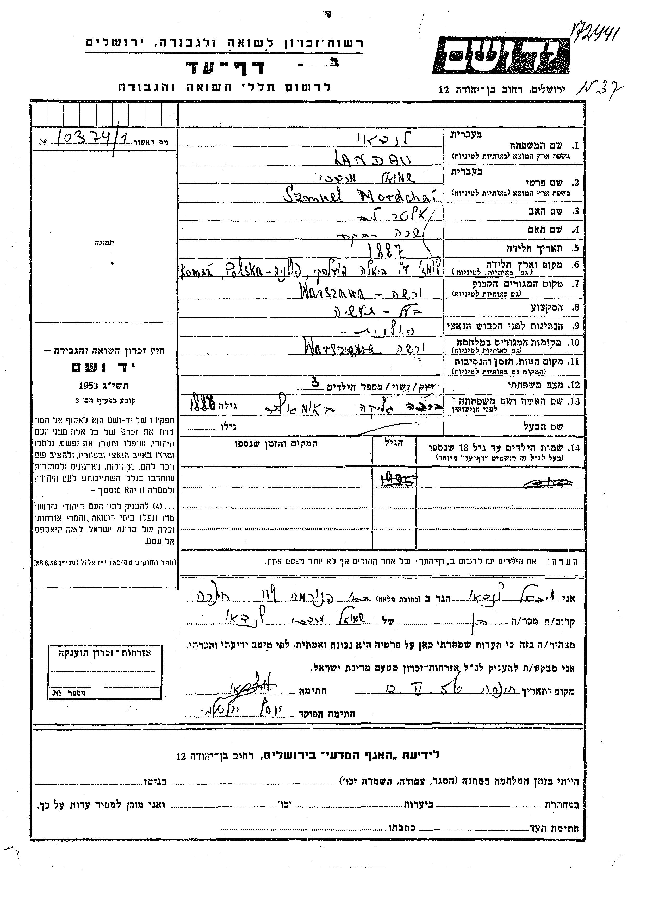 Szmuel Mordchai wurde in der Schoah ermordet.