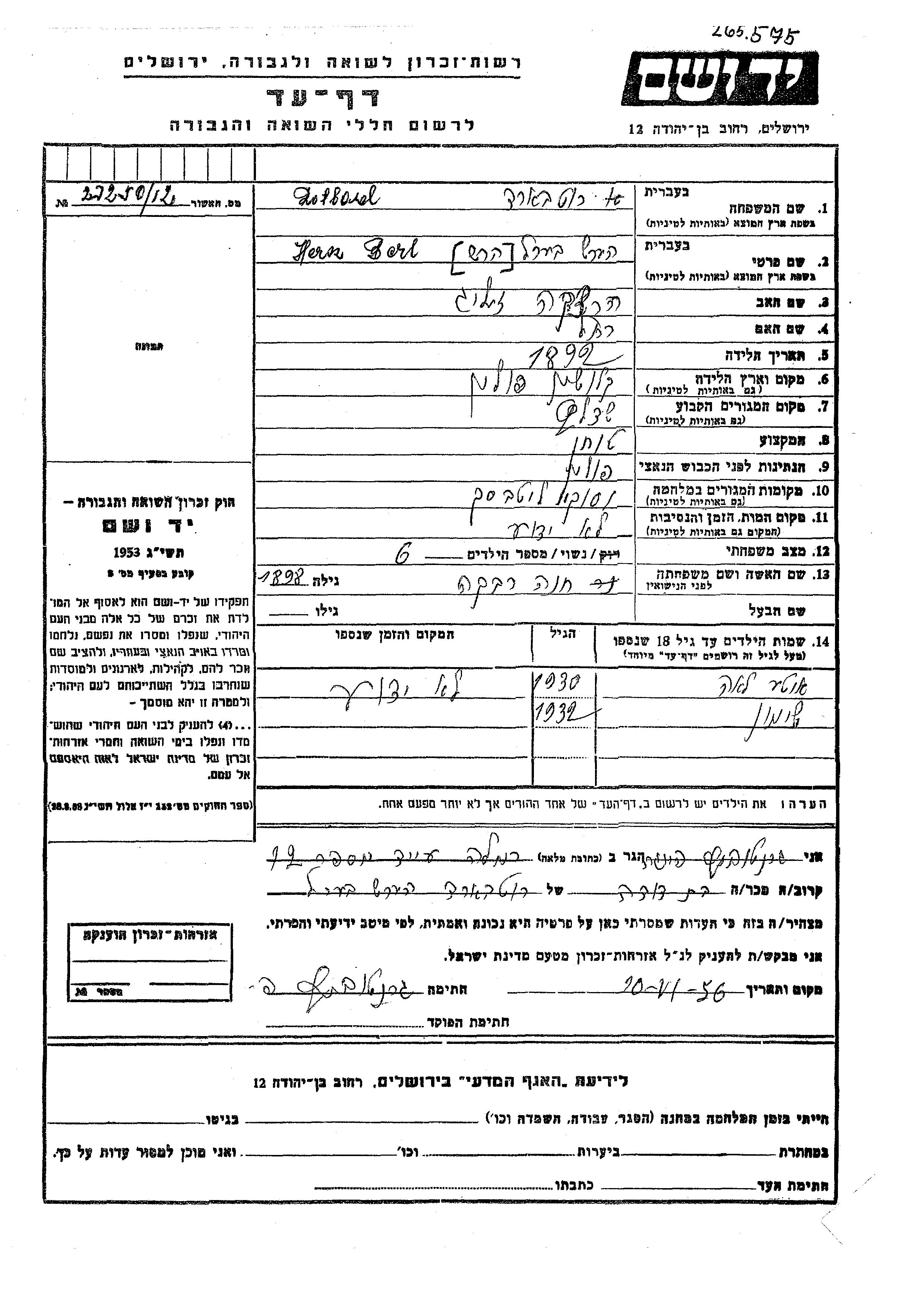 Yad Vashem - Gedenkblätter Sammlung