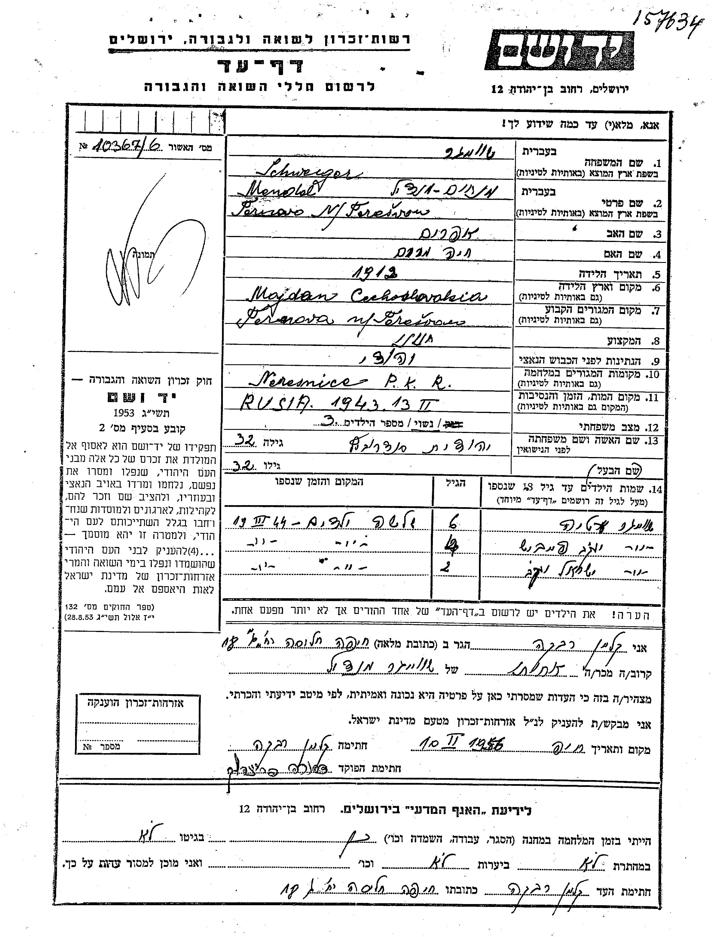Ester Schweiger wurde Sie war die Tochter von Mendel Menakhem Mendil und Yehudit, geb. Senderovitz. Sie war Kind. Vor dem Zweiten Weltkrieg lebte sie in Pernov, Estland. Während des Krieges war sie in Neresnice, Tschechoslowakei.