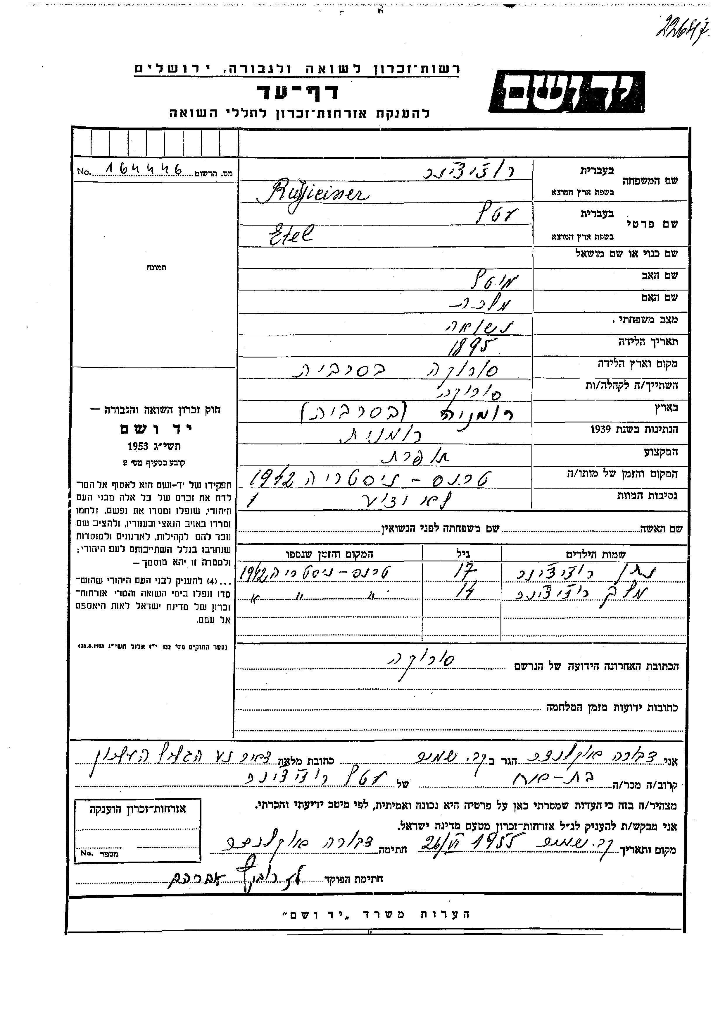 Melekh Ruziciner wurde Er war der Sohn von Etel. Er war Kind. Während des Krieges war er in Soroca, Rumänien.