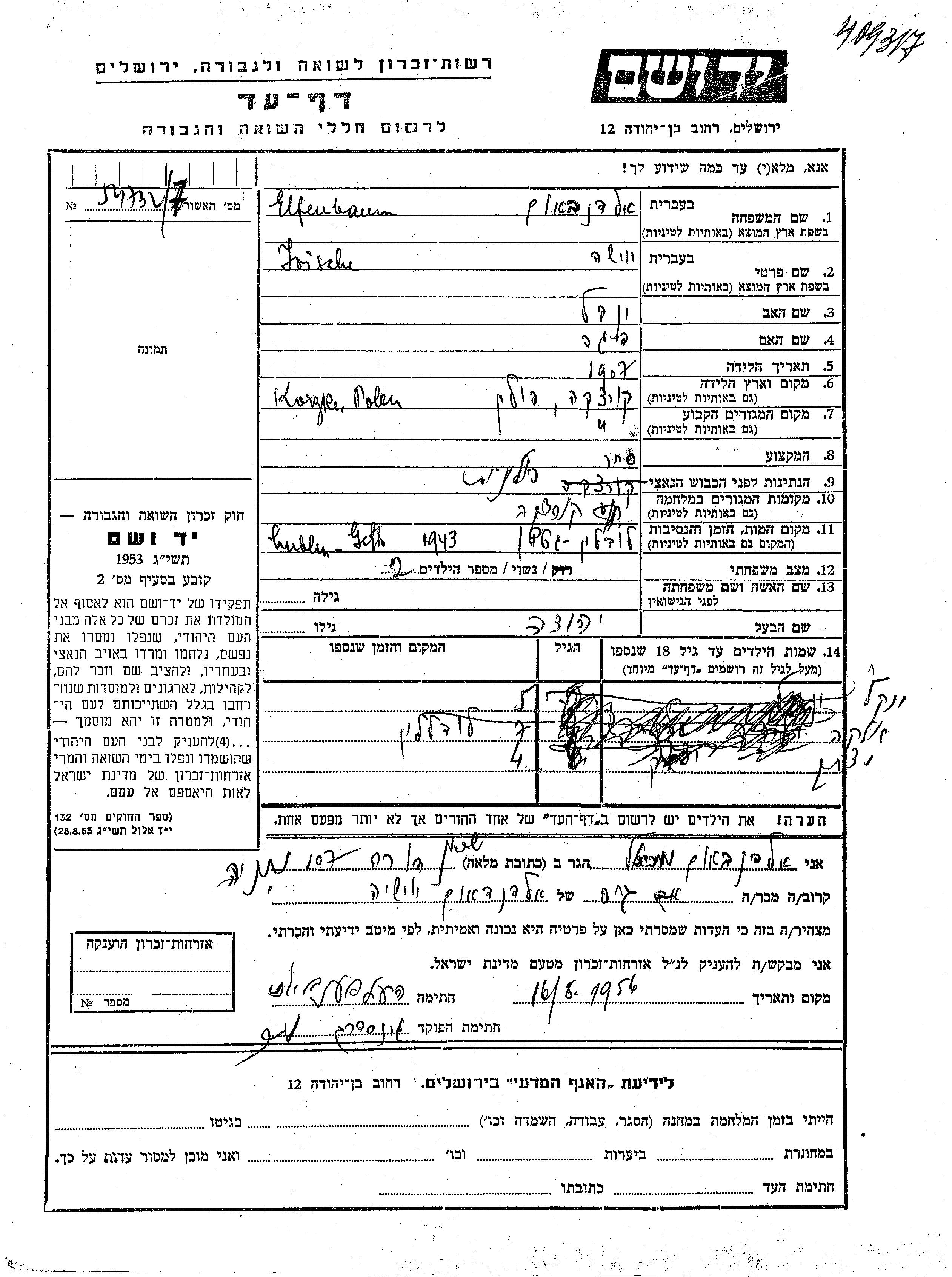 Iankel Elfenbaum wurde Er/sie war der/ die Sohn/Tochter von Joische und Yehuda. Er/Sie war Kind. Vor dem Zweiten Weltkrieg er/sie in Korzce *, Polen. Während des Krieges war er/sie in Korzce *, Polen.