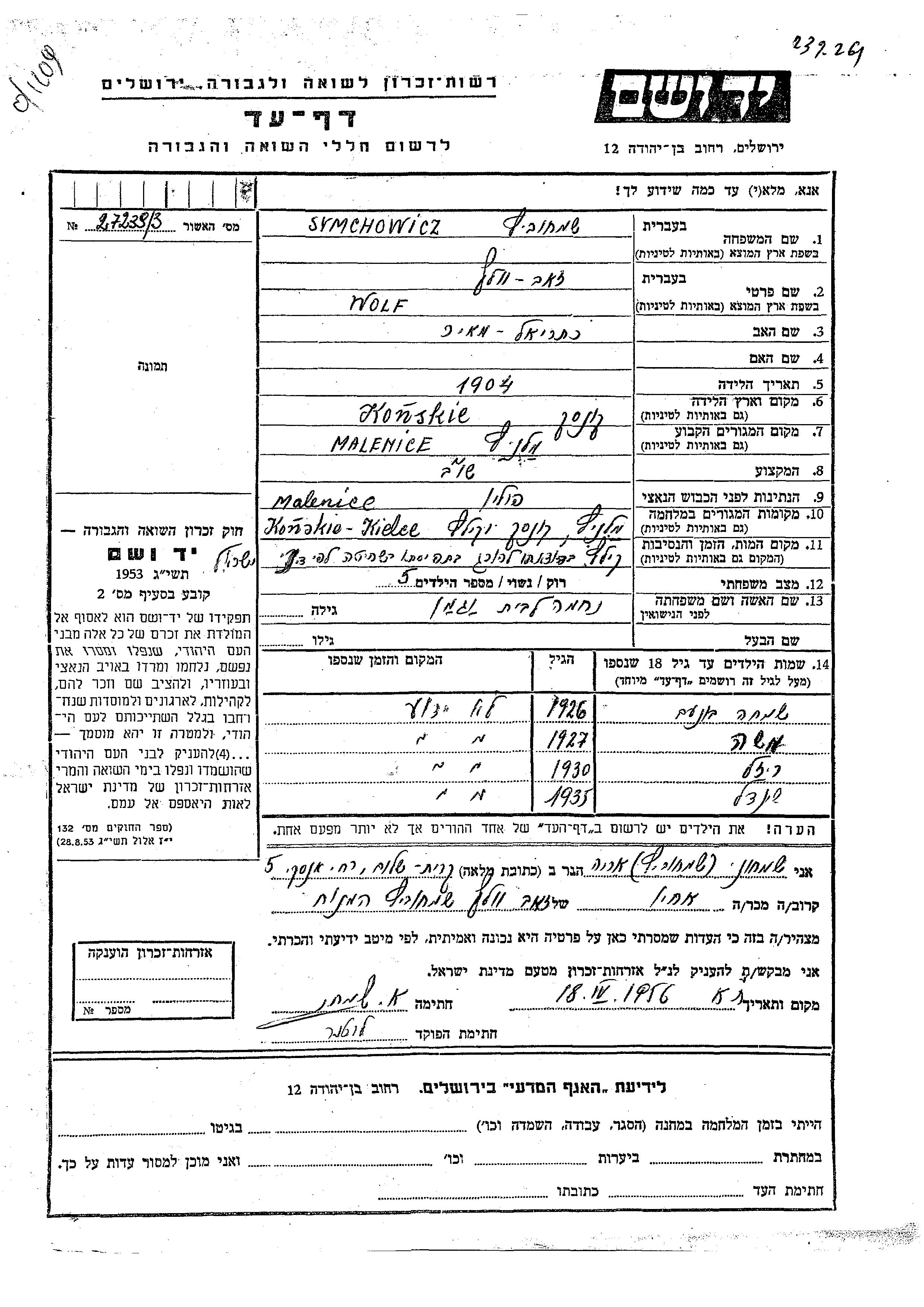 Symchowicz Reizel Maleniec, Polen Gedenkblatt