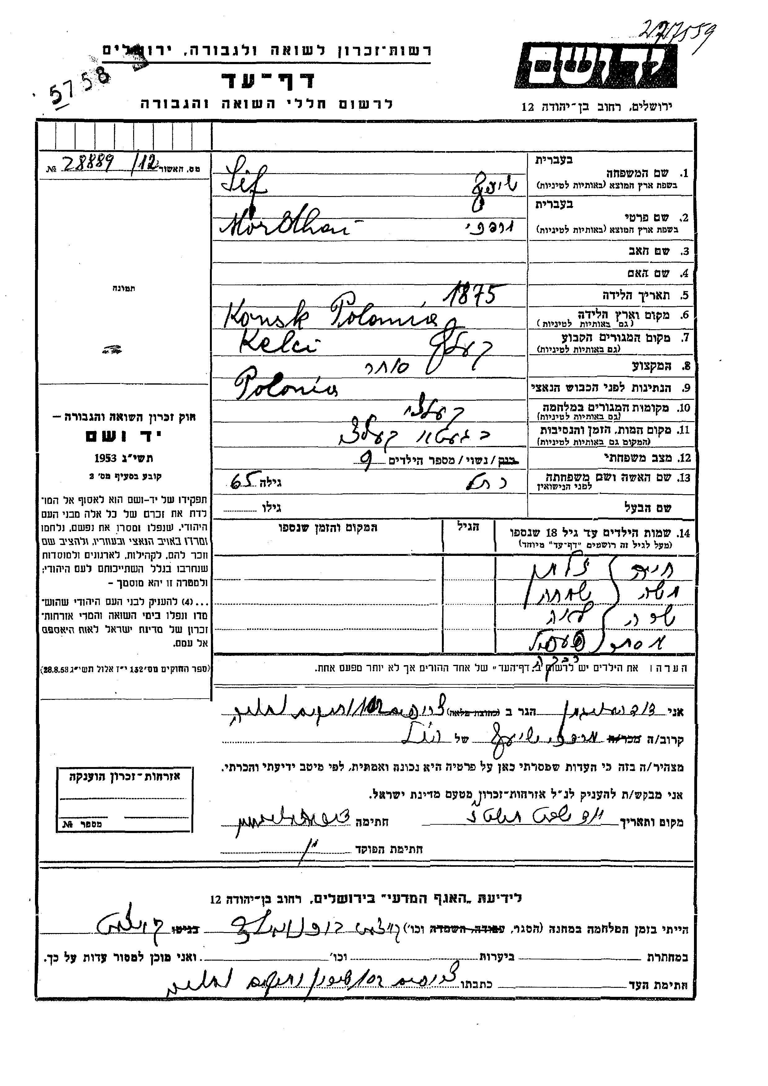 Moshe Sif Shaif wurde Er war der Sohn von Mordhai und Rakhel. Er war Kind. Vor dem Zweiten Weltkrieg lebte er in Kelce, Polen. Während des Krieges war er in Kelce, Polen.