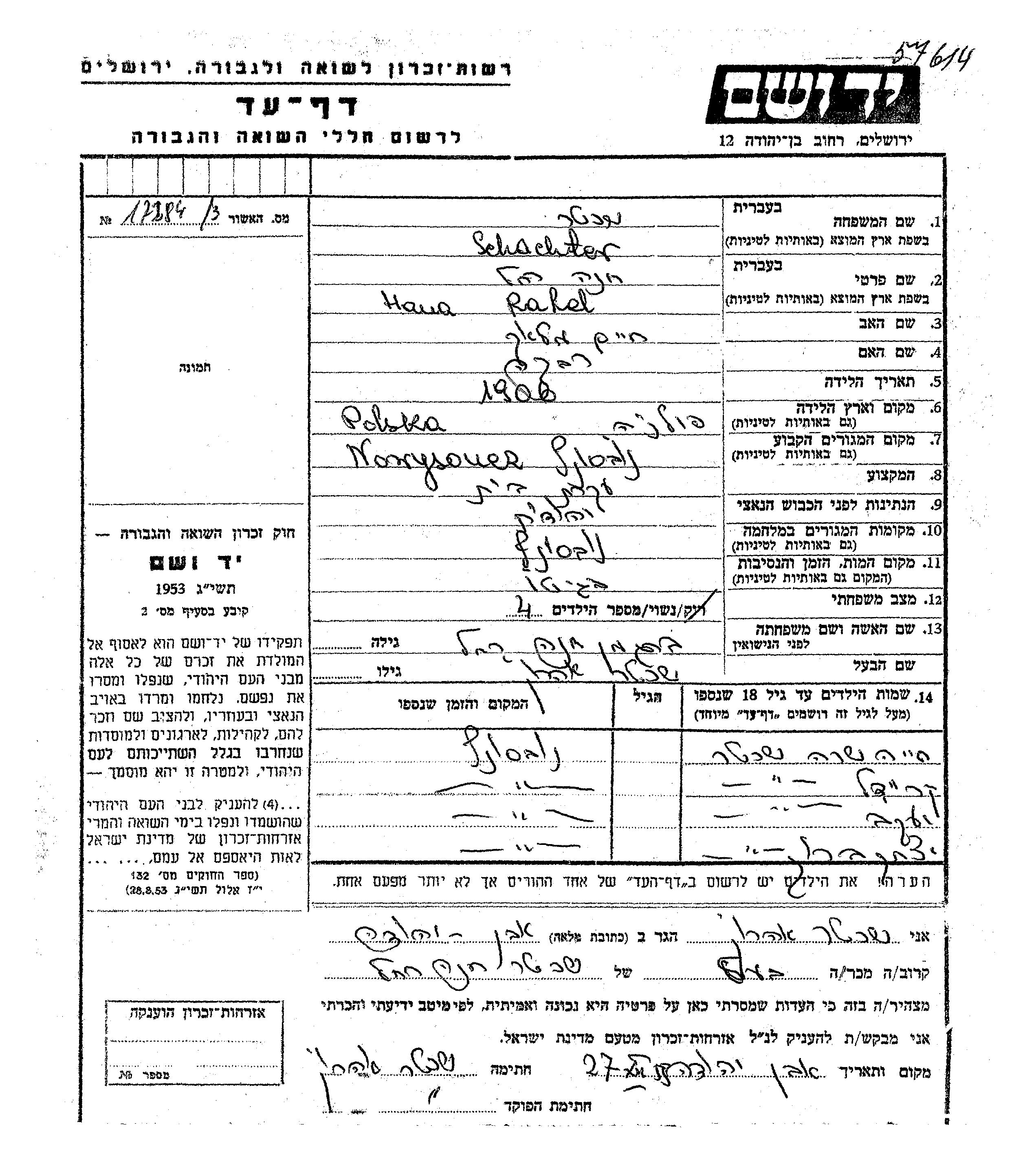 Kreina Schachter wurde Sie war die Tochter von Aharon und Hana Rahel, geb. Bergman. Sie war Kind. Vor dem Zweiten Weltkrieg lebte sie in Nowy Sacz, Polen. Während des Krieges war sie in Nowy Sacz, Polen.