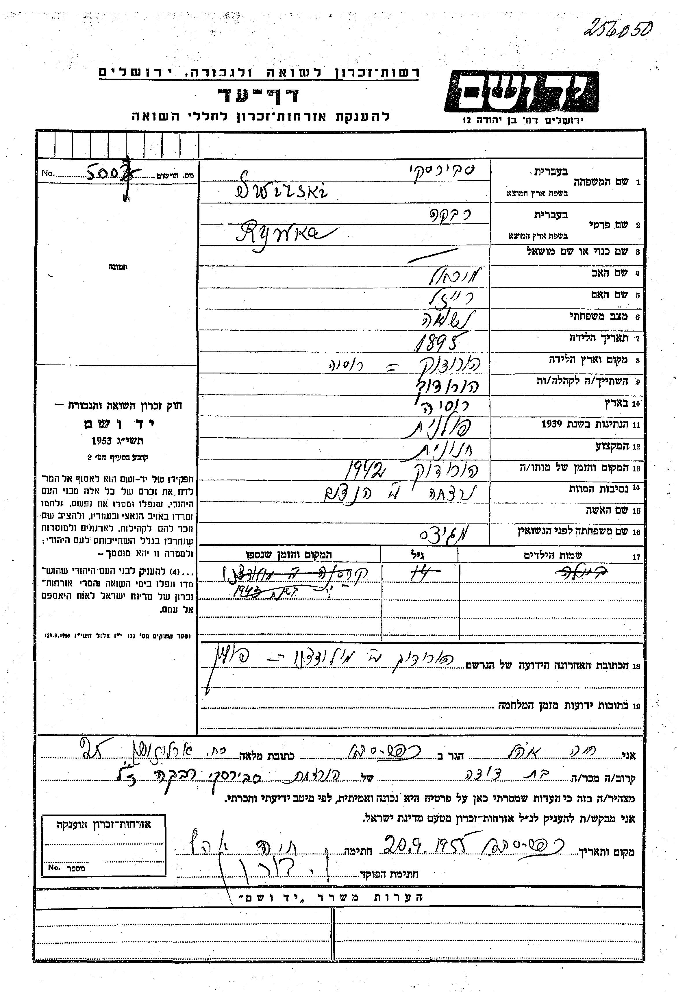 Beila Swirski wurde Er/sie war der/ die Sohn/Tochter von Rywka, geb. Magids. Er/Sie war Kind. Vor dem Zweiten Weltkrieg er/sie in Horodok, Polen. Während des Krieges war er/sie in Horodok, Polen.