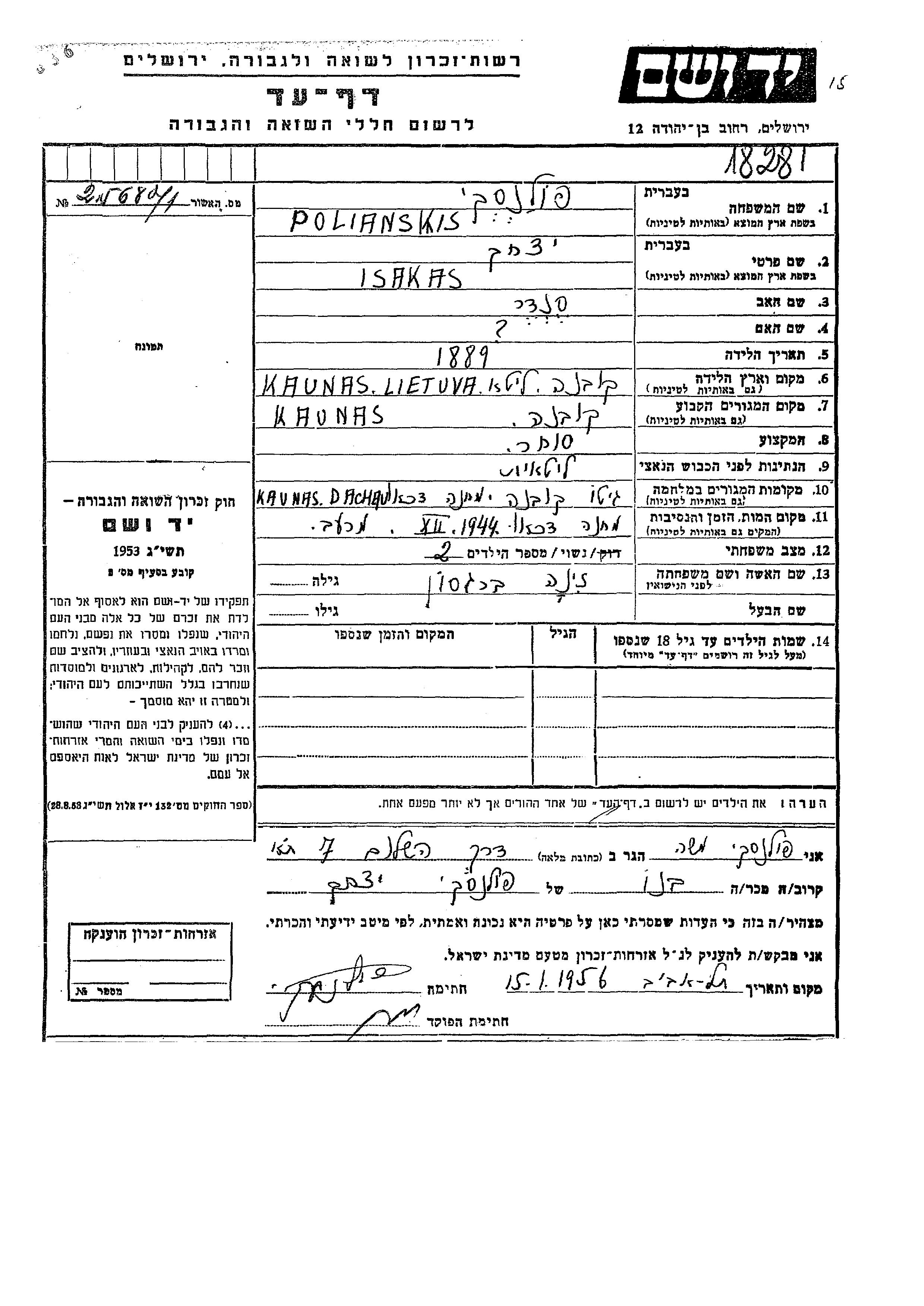 Aufenthaltsort während des Krieges/Schoah