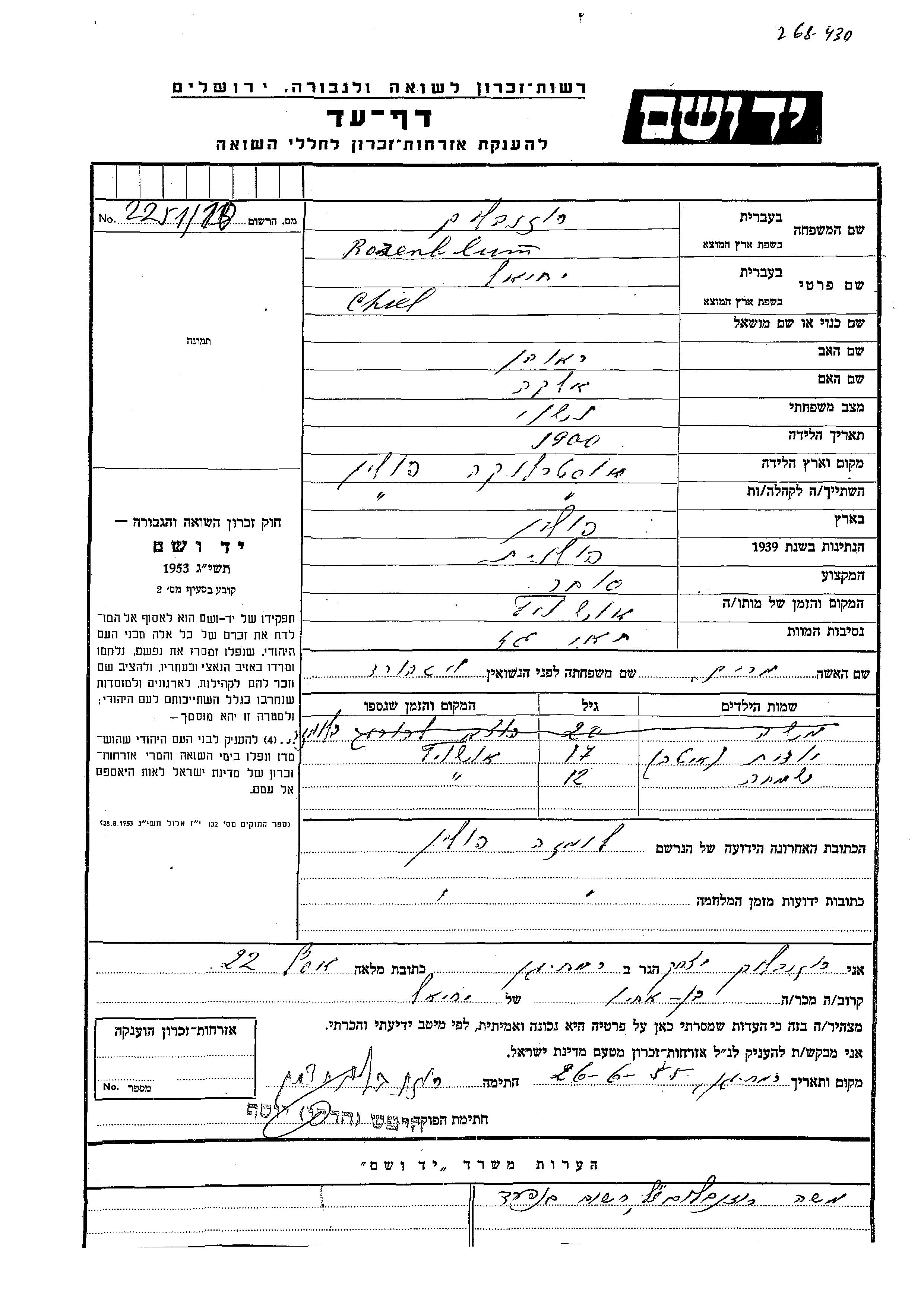 Rozenblum Iudit Ostroleka, Polen Gedenkblatt