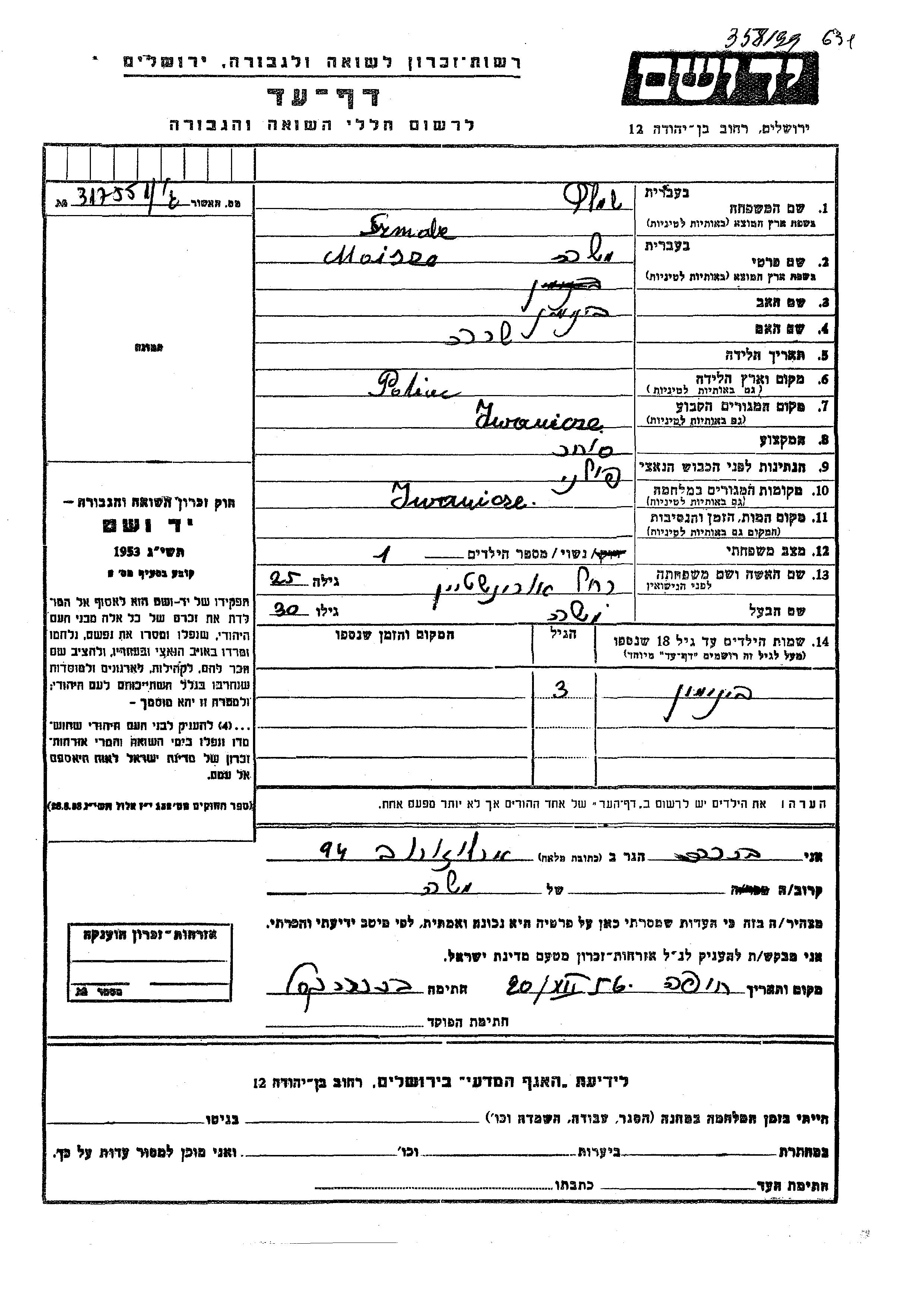 Szmalc Shmeltz Biniamin Iwanicze, Polen Gedenkblatt