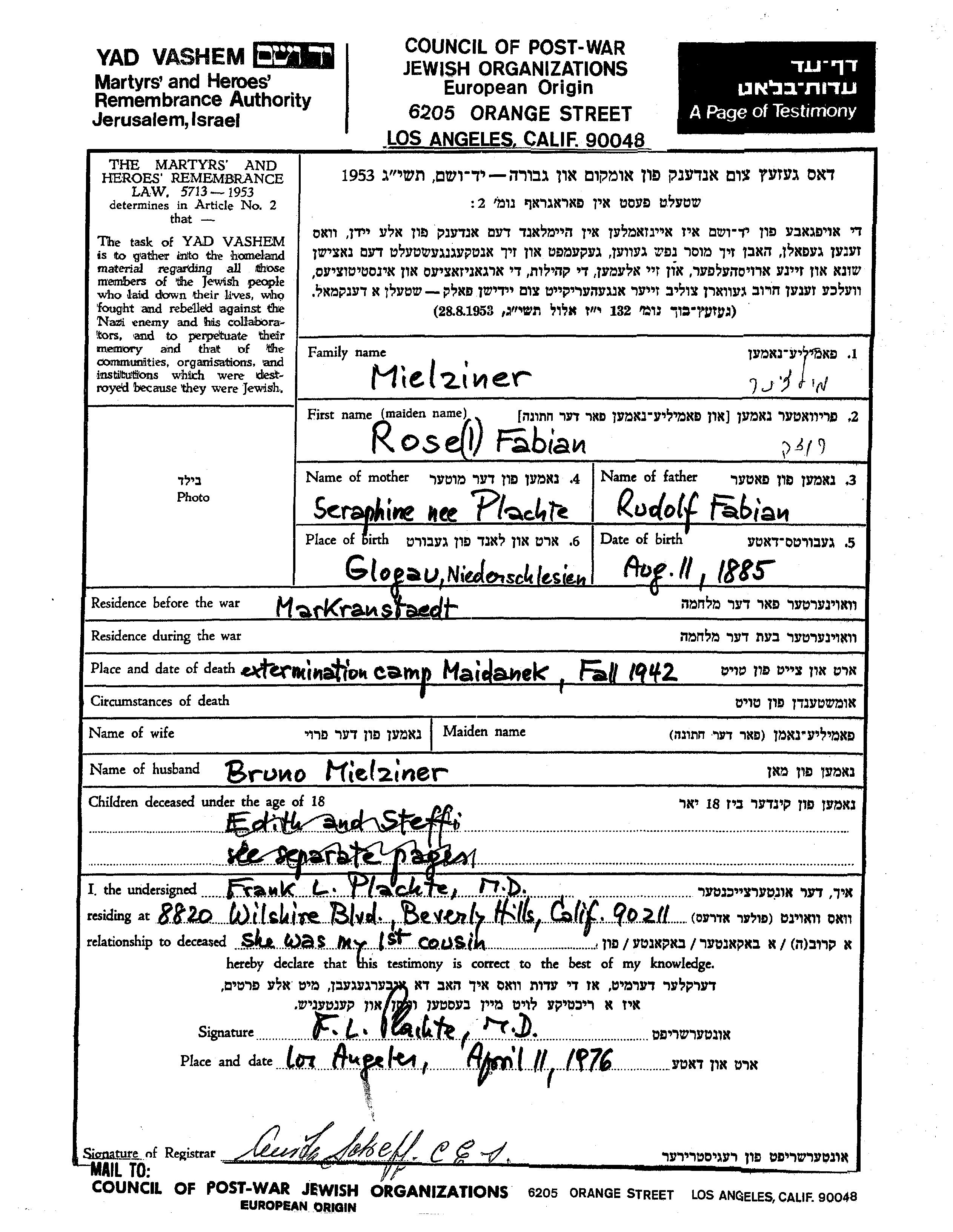 Steffi Mielziner wurde Sie war die Tochter von Bruno und Roza, geb. Fabian. Sie war Kind. Vor dem Zweiten Weltkrieg lebte sie in Markranstaedt, Deutsches Reich.