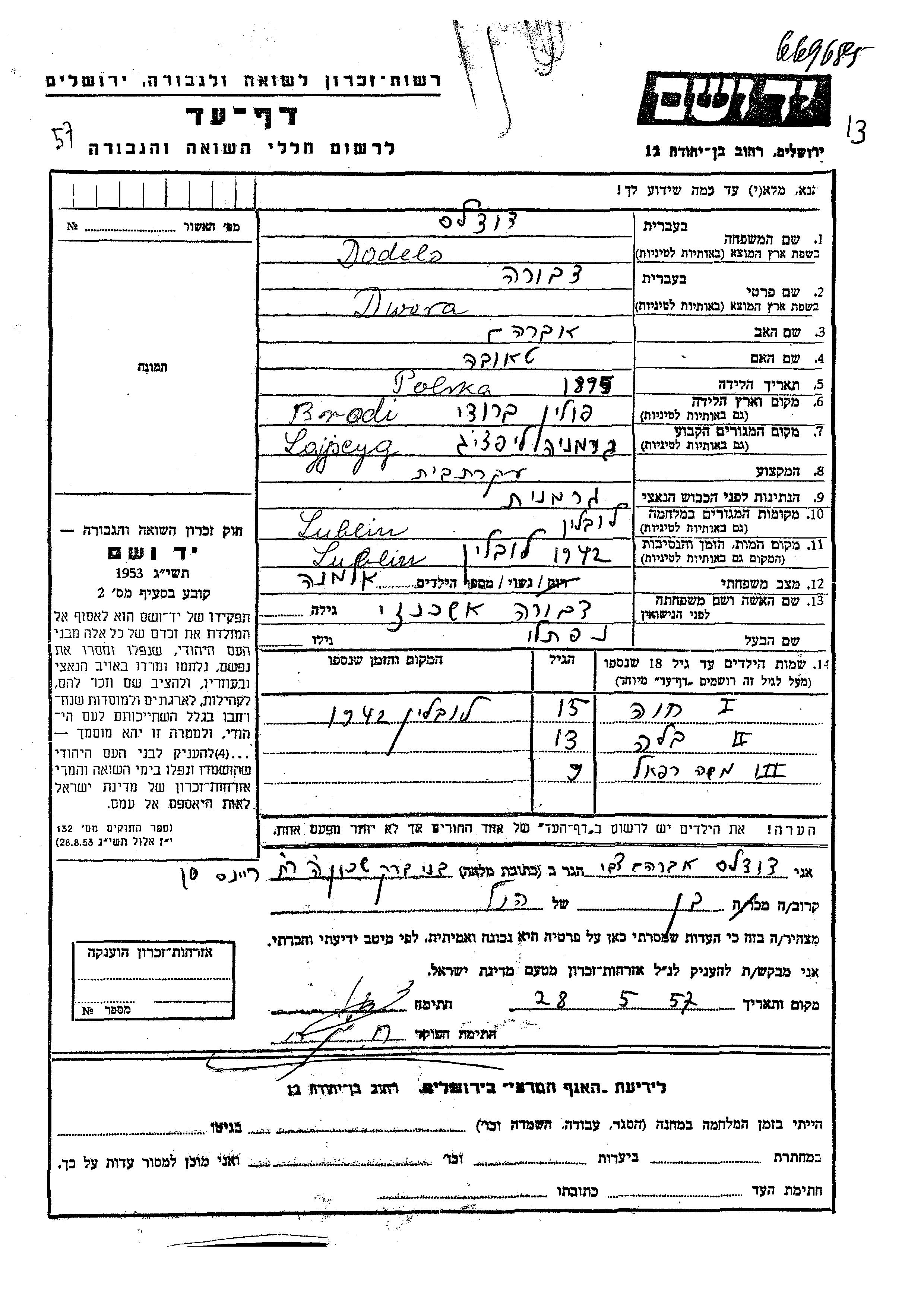 Moshe Rafael Dodels wurde Er war der Sohn von Naftali und Dwora, geb. Ashkenazi. Er war Kind. Vor dem Zweiten Weltkrieg lebte er in Leipzig, Deutsches Reich. Während des Krieges war er in Lublin, Polen.