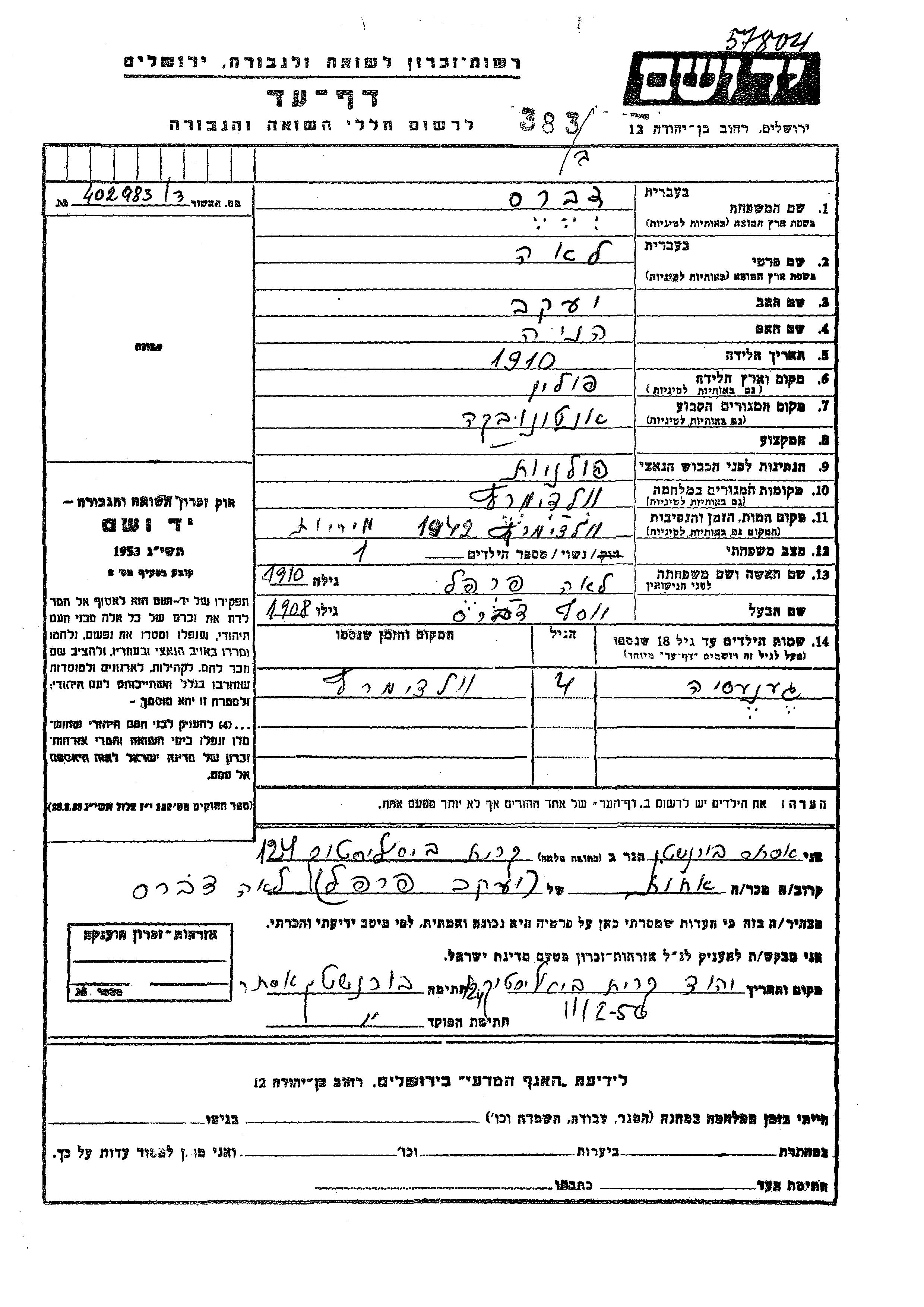 Gnana Dveres wurde Sie war die Tochter von Yosef und Lea, geb. Farfel. Sie war Kind. Vor dem Zweiten Weltkrieg lebte sie in Antonowka, Polen. Während des Krieges war sie in Wlodzimierz, Polen.