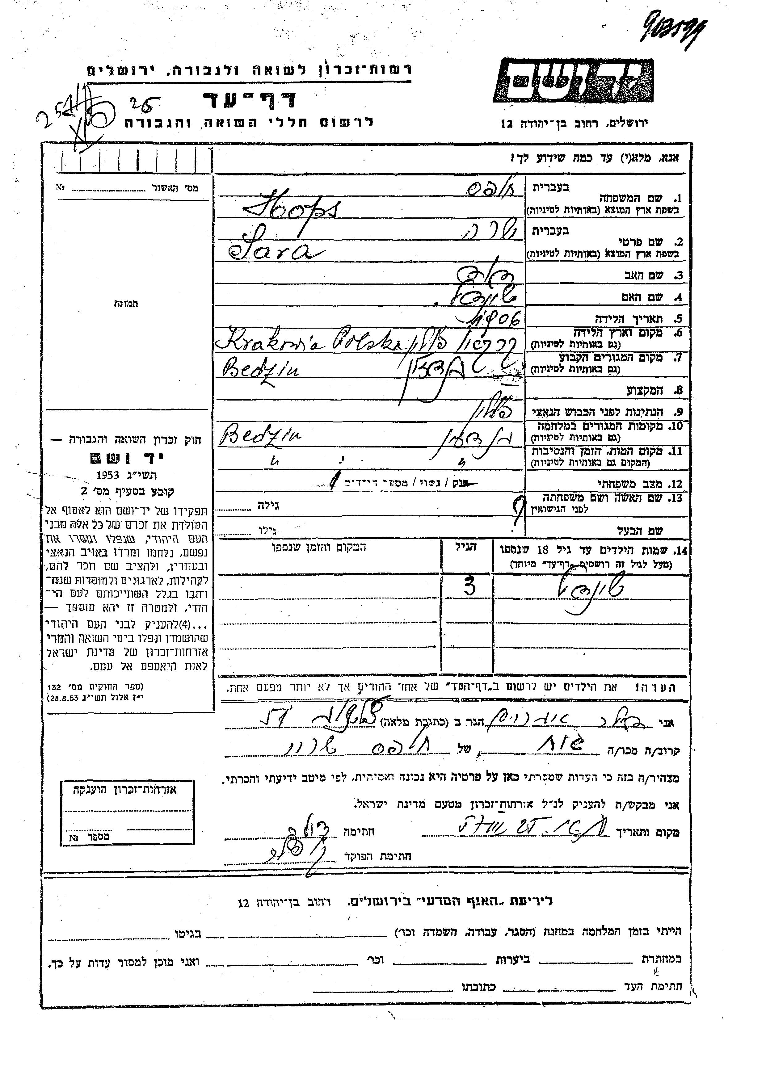 Sheindl Hops wurde Sie war die Tochter von Sara. Sie war Kind. Vor dem Zweiten Weltkrieg lebte sie in Będzin, Polen. Während des Krieges war sie in Będzin, Polen.