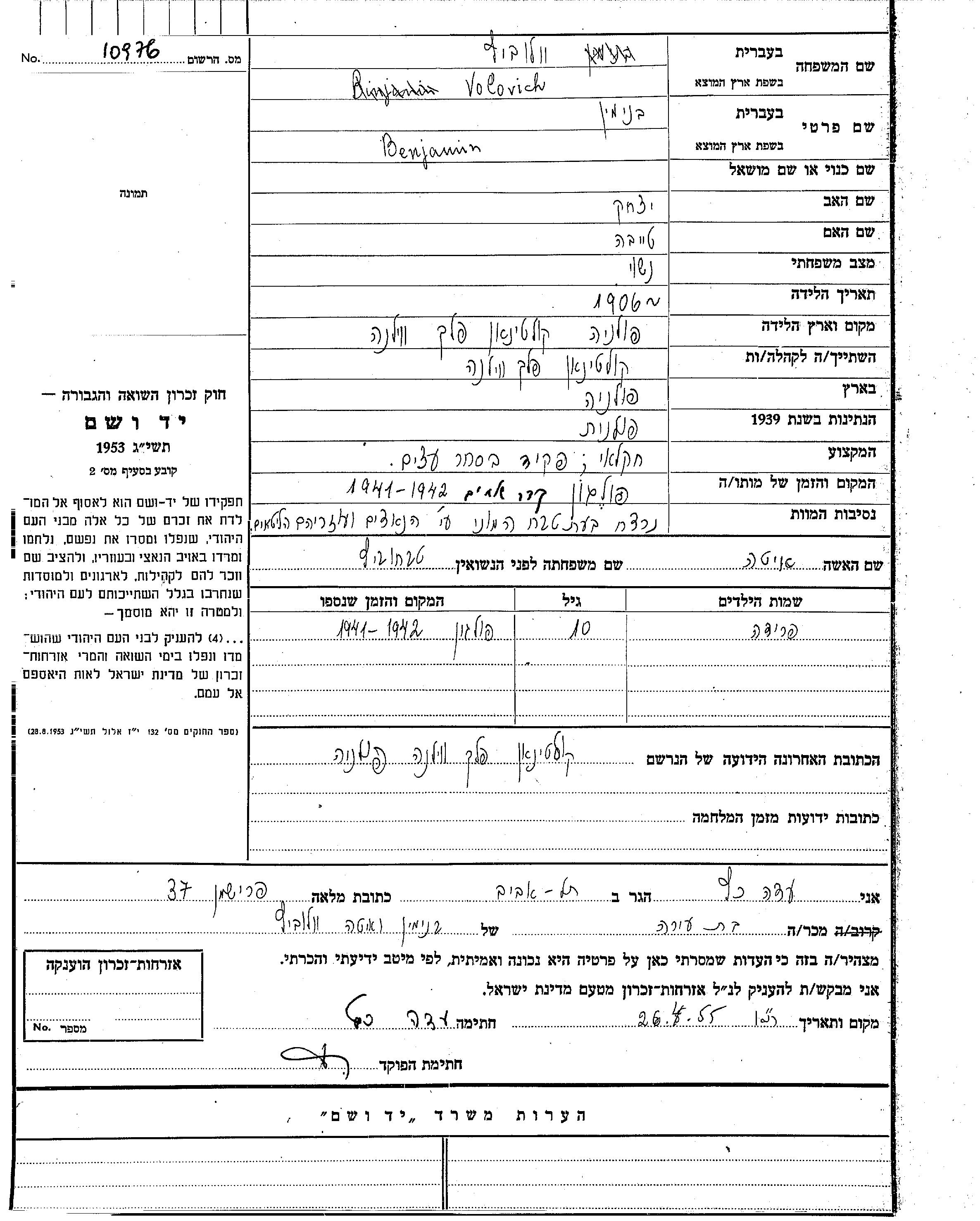 Frida Volovich wurde Sie war die Tochter von Benjamin und Ita, geb. Tabakhovich. Sie war Kind. Vor dem Zweiten Weltkrieg lebte sie in Koltyniany, Polen. Während des Krieges war sie in Koltyniany, Polen.