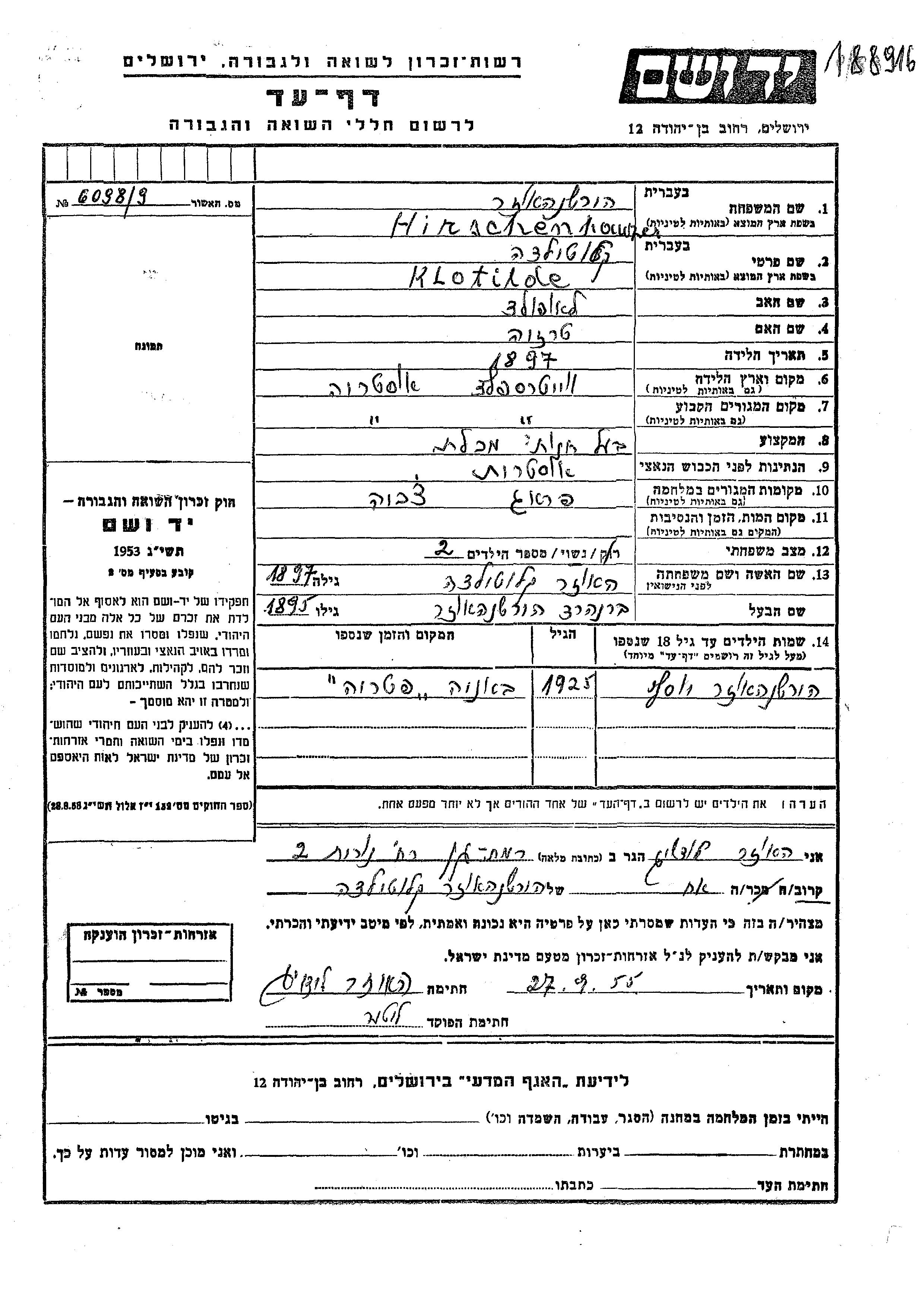 Yosef Hirschenaowzer Hirshenhauzer wurde im Jahr 1925 geboren. Er war der Sohn von Bernhard und Klotilde, geb. Hauzer. Er war Kind. Vor dem Zweiten Weltkrieg lebte er in Weitersfeld, Österreich. Während des Krieges war er in Praha, Tschechoslowakei.