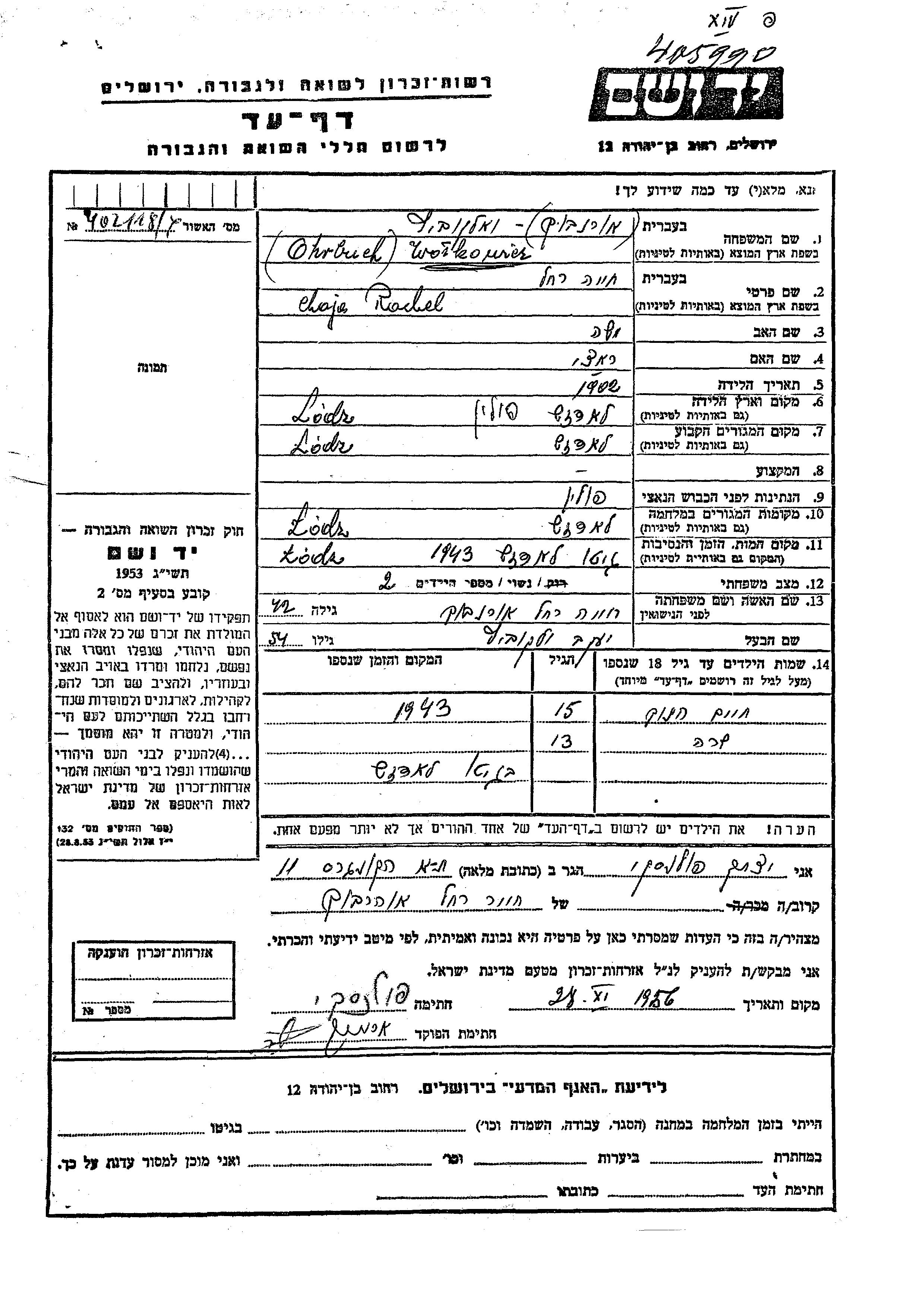 Khaim Khanokh Wolkowicz Ohrnbuch wurde Er war der Sohn von Yaakov und Chaja Rachel, geb. Orenbukh. Er war Kind. Vor dem Zweiten Weltkrieg lebte er in Lodz, Polen. Während des Krieges war er in Lodz, Polen.