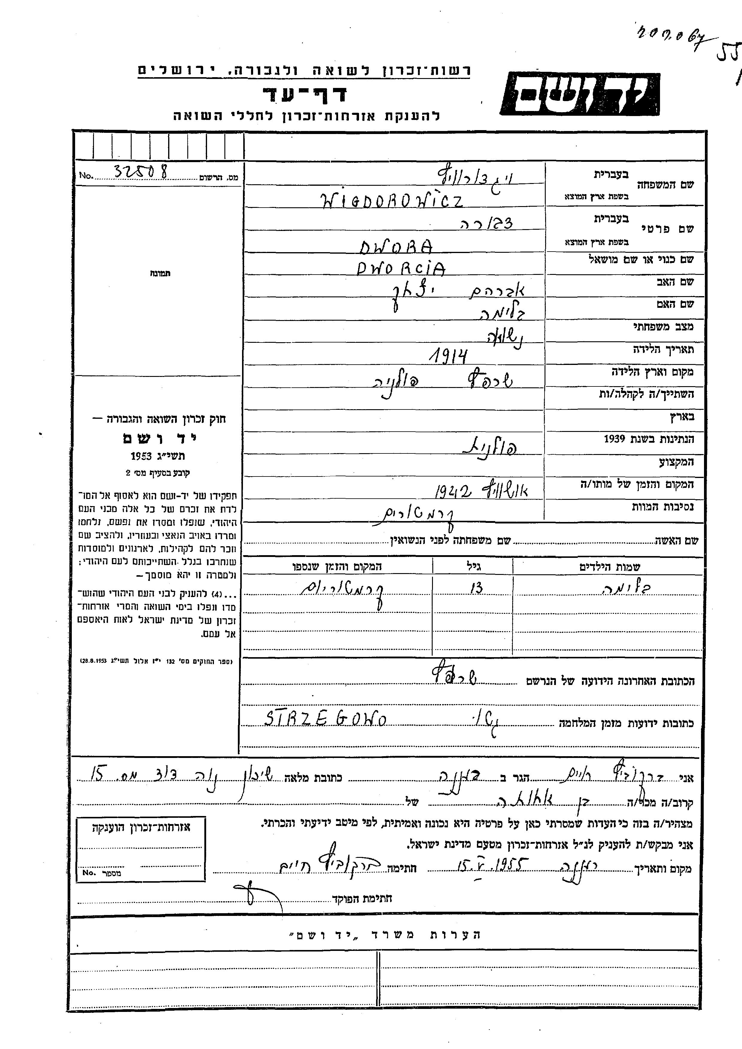 Blima Wigdorowicz wurde Sie war die Tochter von Dwora. Sie war Kind. Während des Krieges war sie in Strzegowo, Polen.