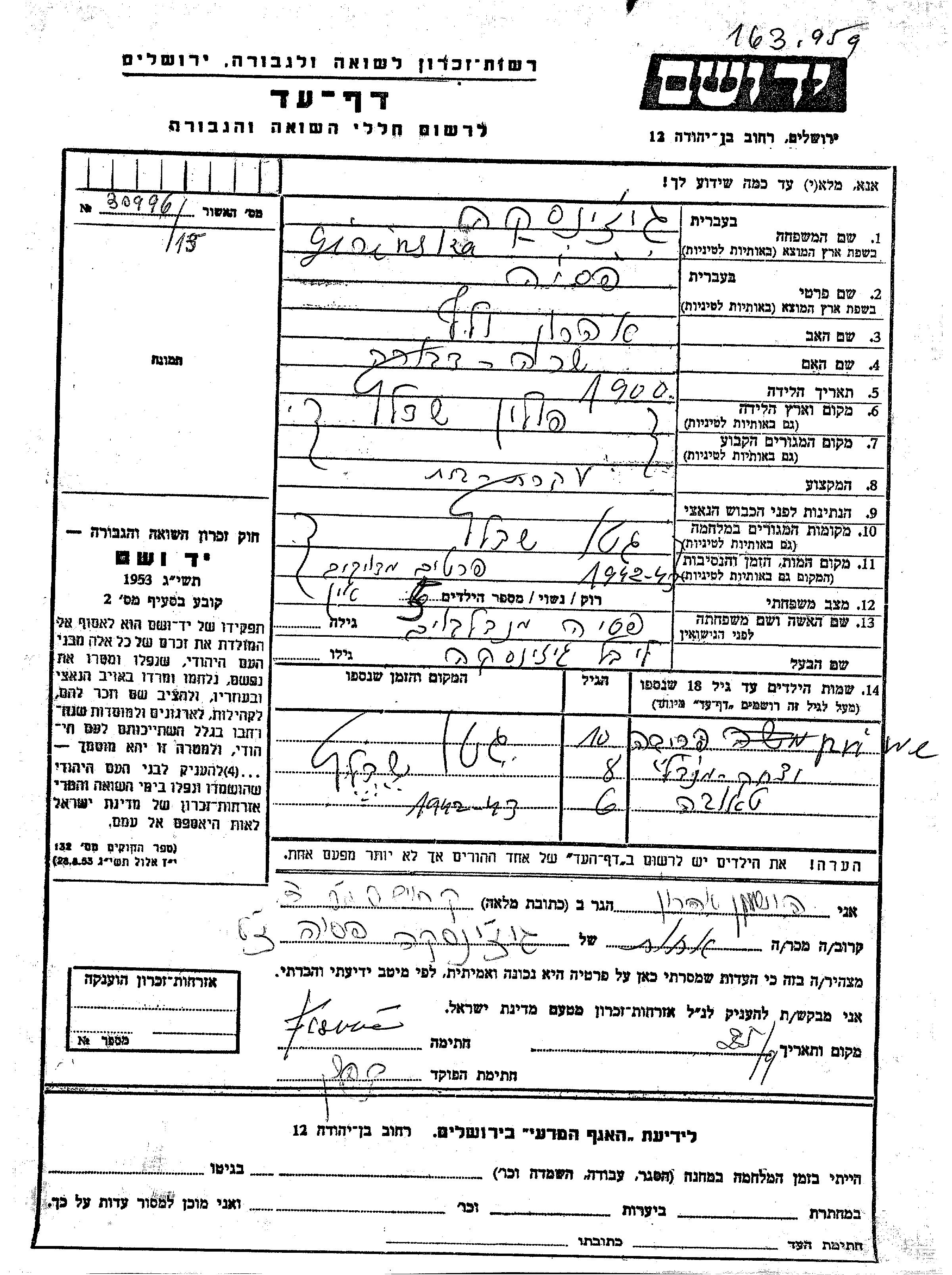 Yad Vashem - Gedenkblätter Sammlung