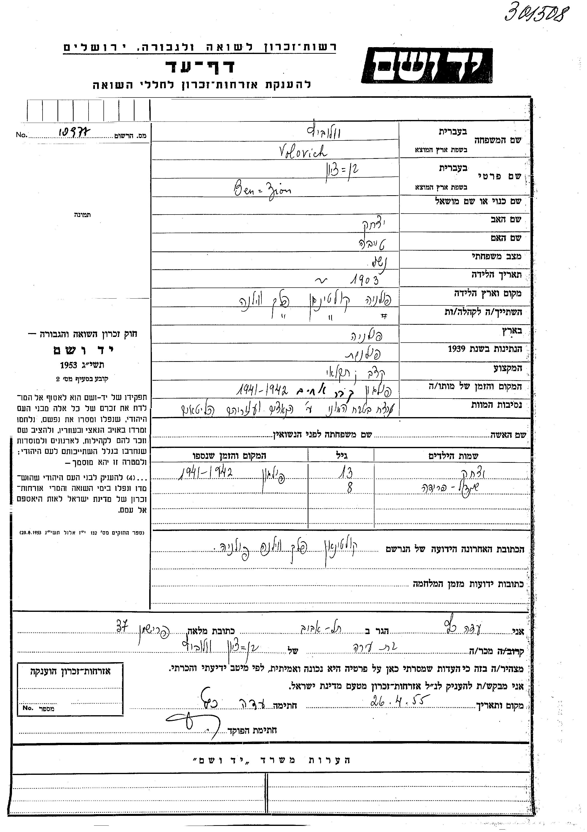Volovich Sheindl Frida Koltiniany, Polen Gedenkblatt