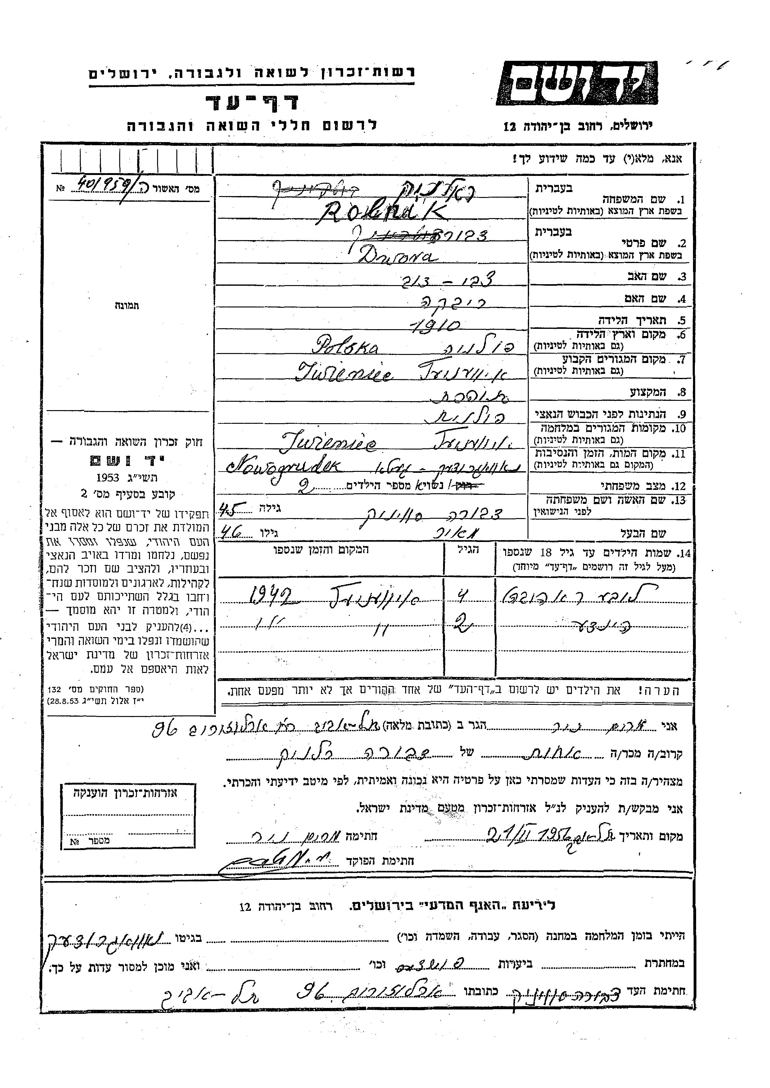 Lube Ahuva Rolnik wurde Sie war die Tochter von Meir und Dwora, geb. Svinik. Sie war Kind. Vor dem Zweiten Weltkrieg lebte sie in Iwanicze, Polen. Während des Krieges war sie in Iwanicze, Polen.