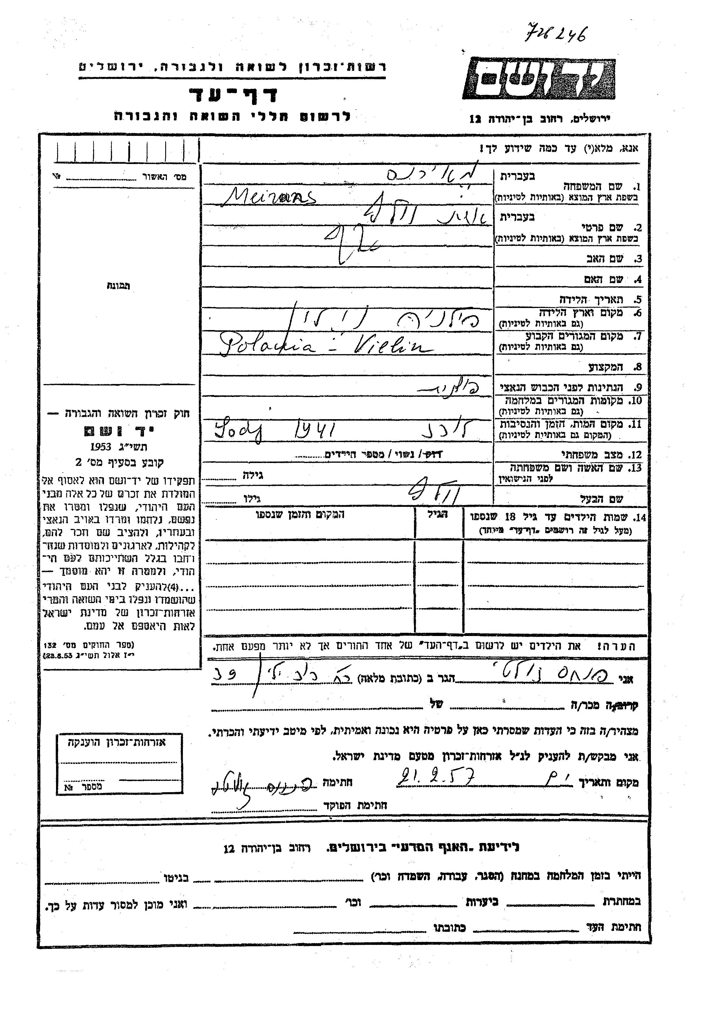 Marantz Vorname unbekannt Wielun, Polen Gedenkblatt