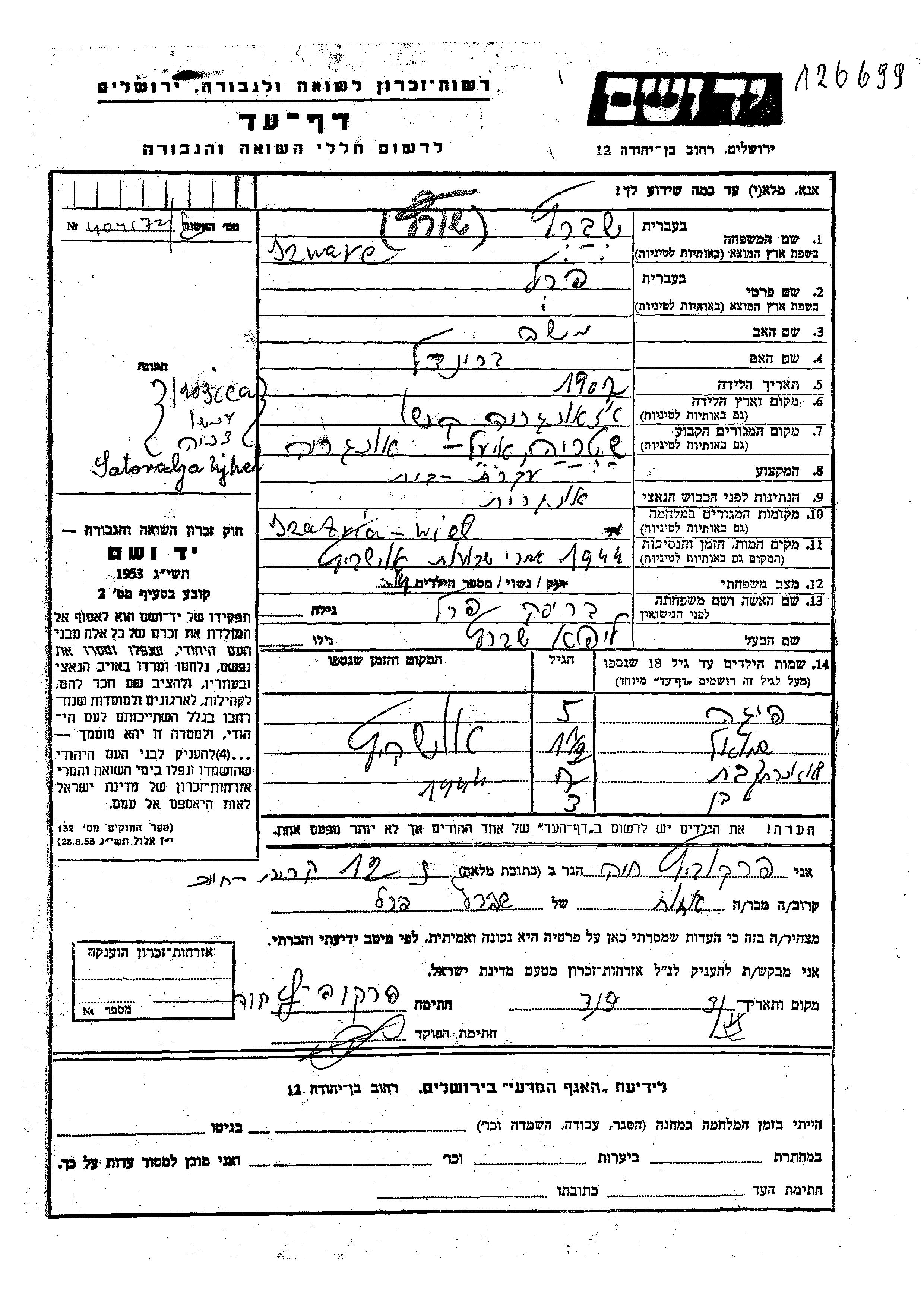 Szwarc Shmuel unbekannter Ort, Gedenkblatt