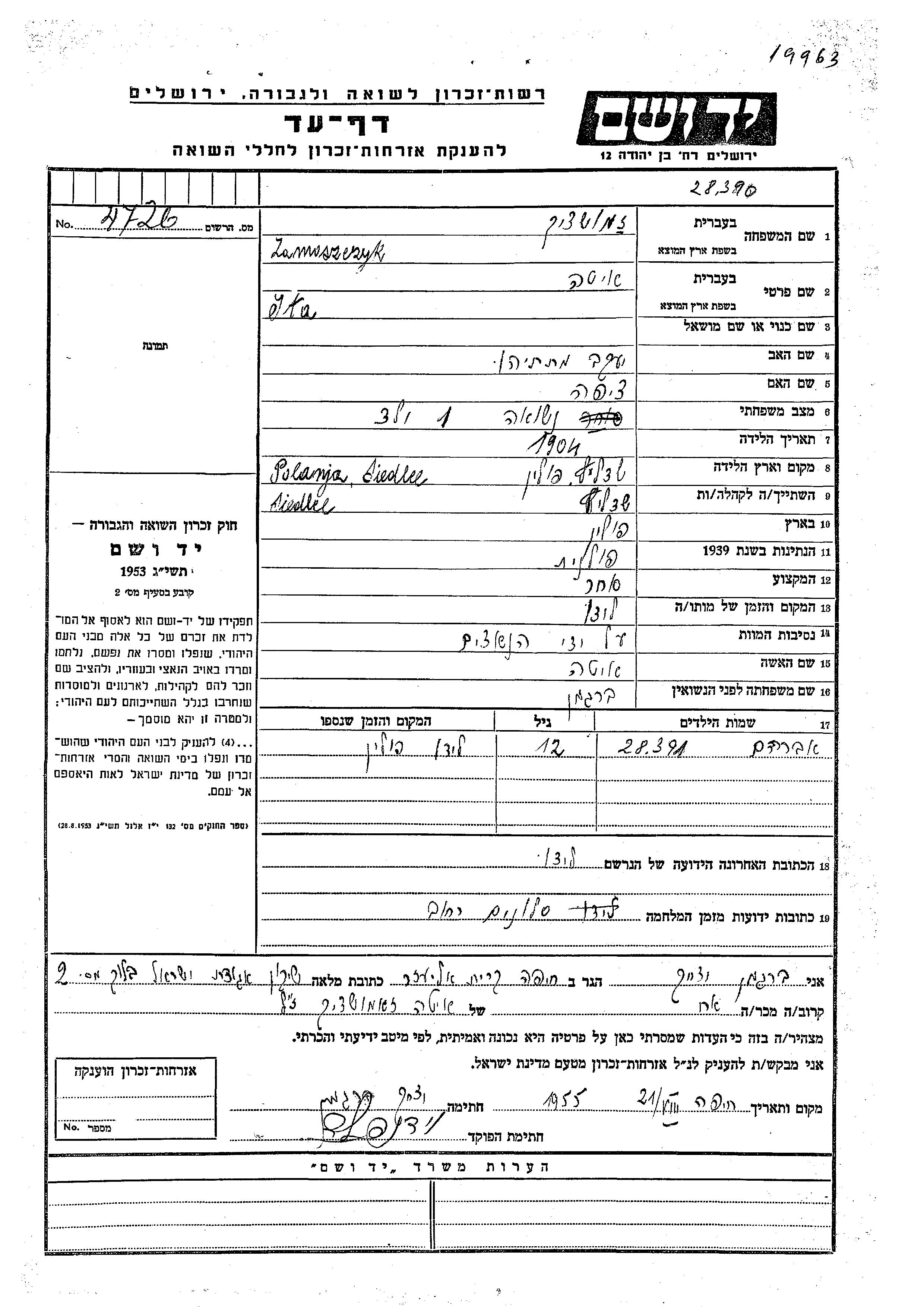 Suche nach einem Todesjahr im Zeitraum der Holocaust: 1933 bis 1945. Bitte wählen Sie 'Exakt' im Auswahlmenü, um nur nach einem einzelnen Jahr zu suchen, alternativ können Sie die flexibleren Optionen '+/- 2 Jahre' oder '+/- 5 Jahre' wählen.