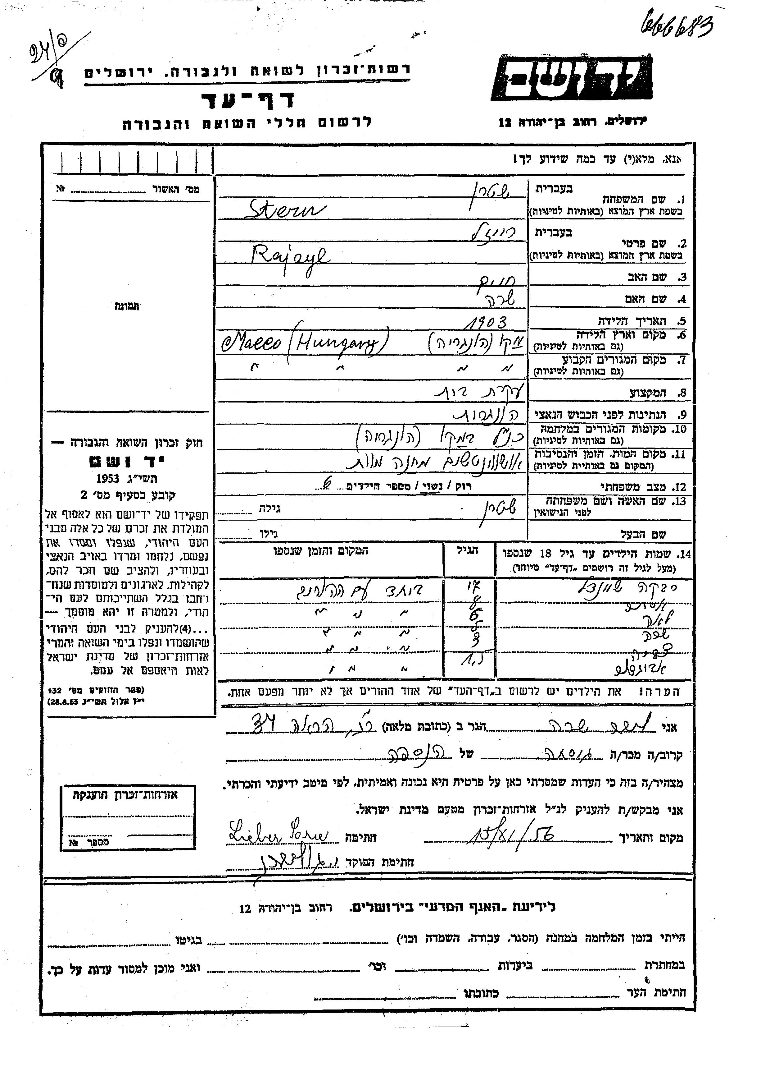 Avigdor Name unbekannt wurde Er war der Sohn von Rajzyl, geb. Shtern. Er war Kind. Vor dem Zweiten Weltkrieg lebte er in Mako, Ungarn. Während des Krieges war er in Mako, Ungarn.