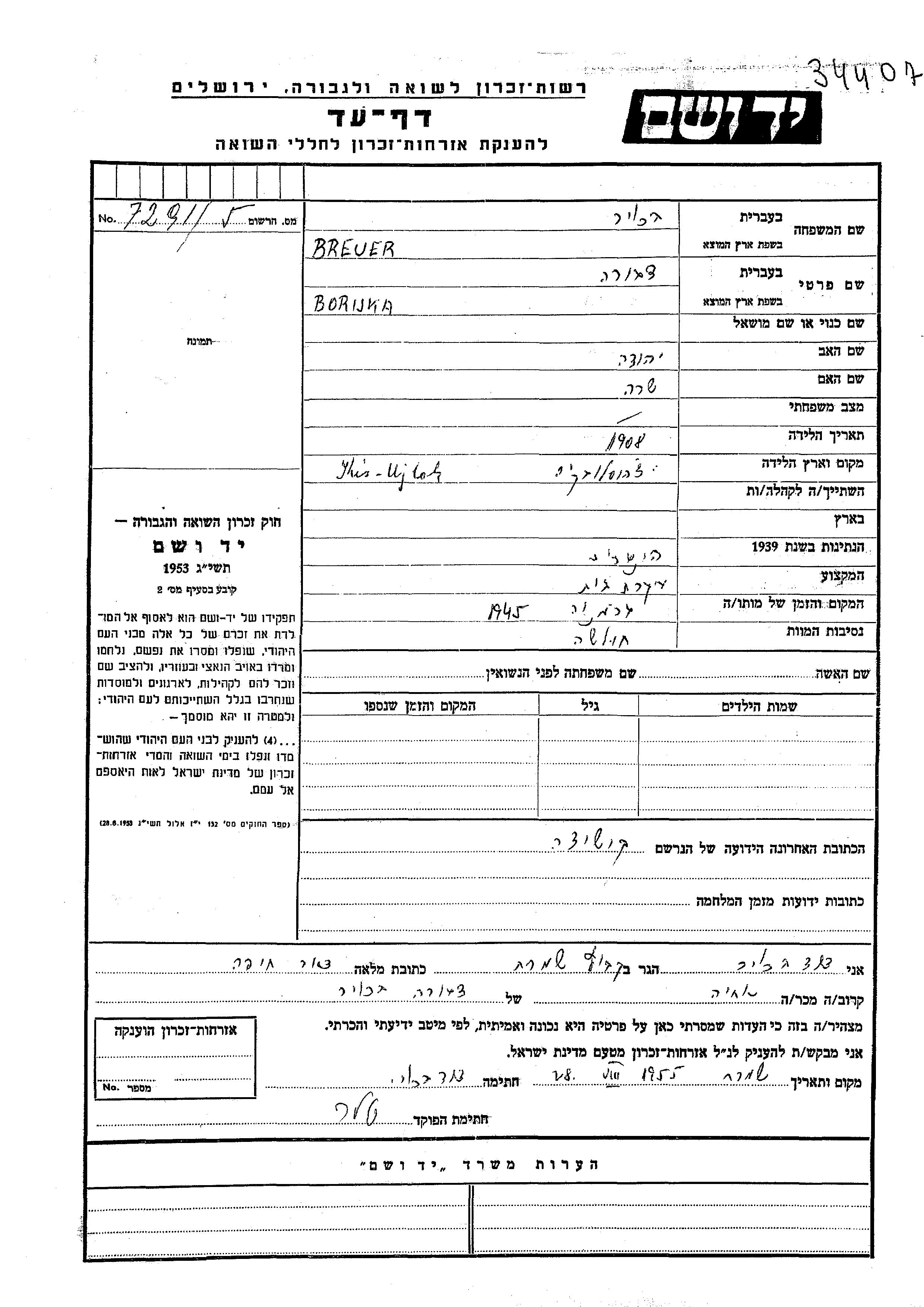 Borbala Dvora Breuer wurde im Jahr 1908 in Koszice, Tschechoslowakei geboren. Sie war die Tochter von Yehuda und Sara. Sie war Hausfrau. Vor dem Zweiten Weltkrieg lebte sie in Koszice, Tschechoslowakei.
