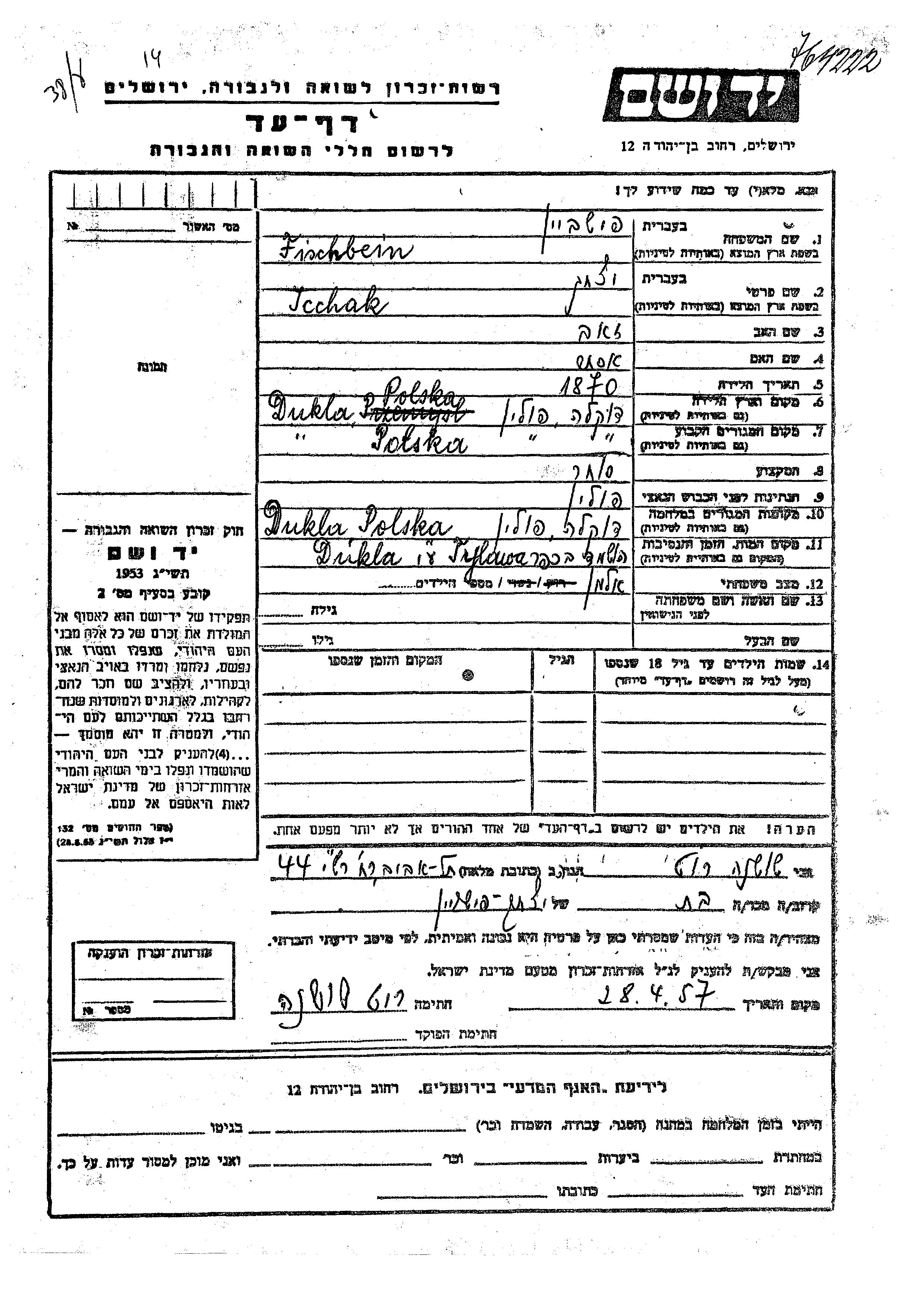 Jcchak wurde in der Schoah ermordet. Todesort: Dukla, Polen.