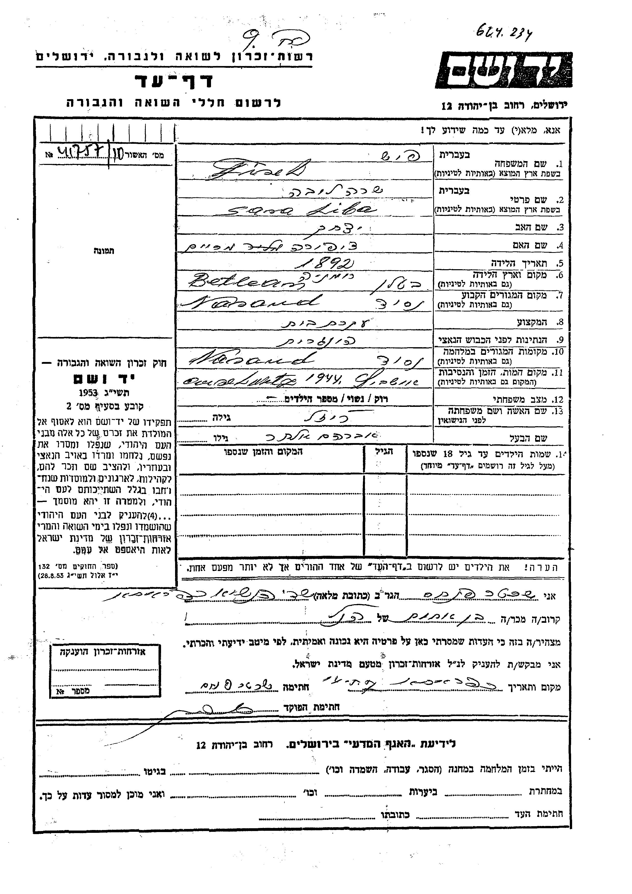 Sara Liba wurde in der Schoah ermordet. Todesort: Auschwitz, Polen im Jahr 1944.