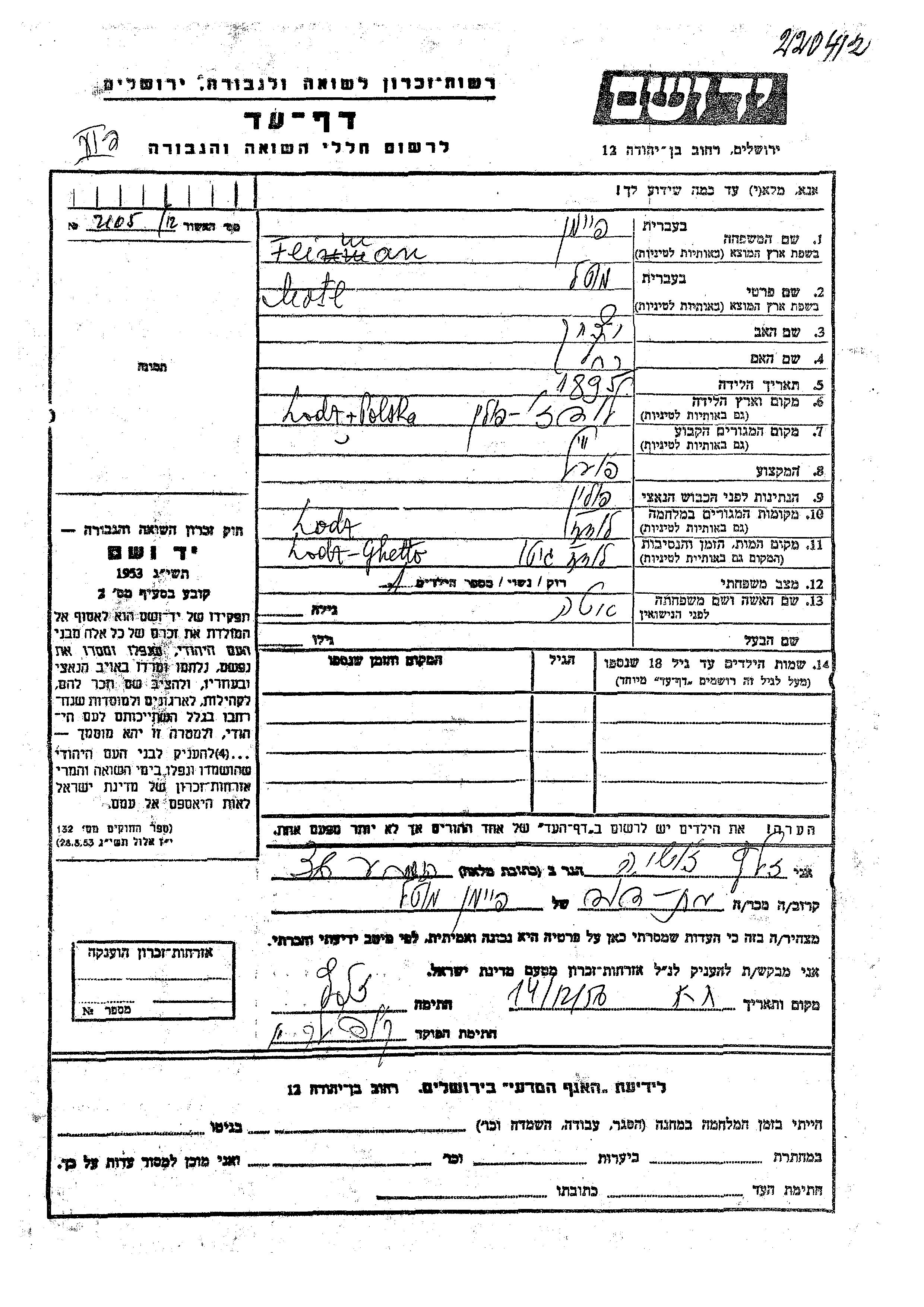 Motl wurde in der Schoah ermordet. Todesort: Lodz, Polen.