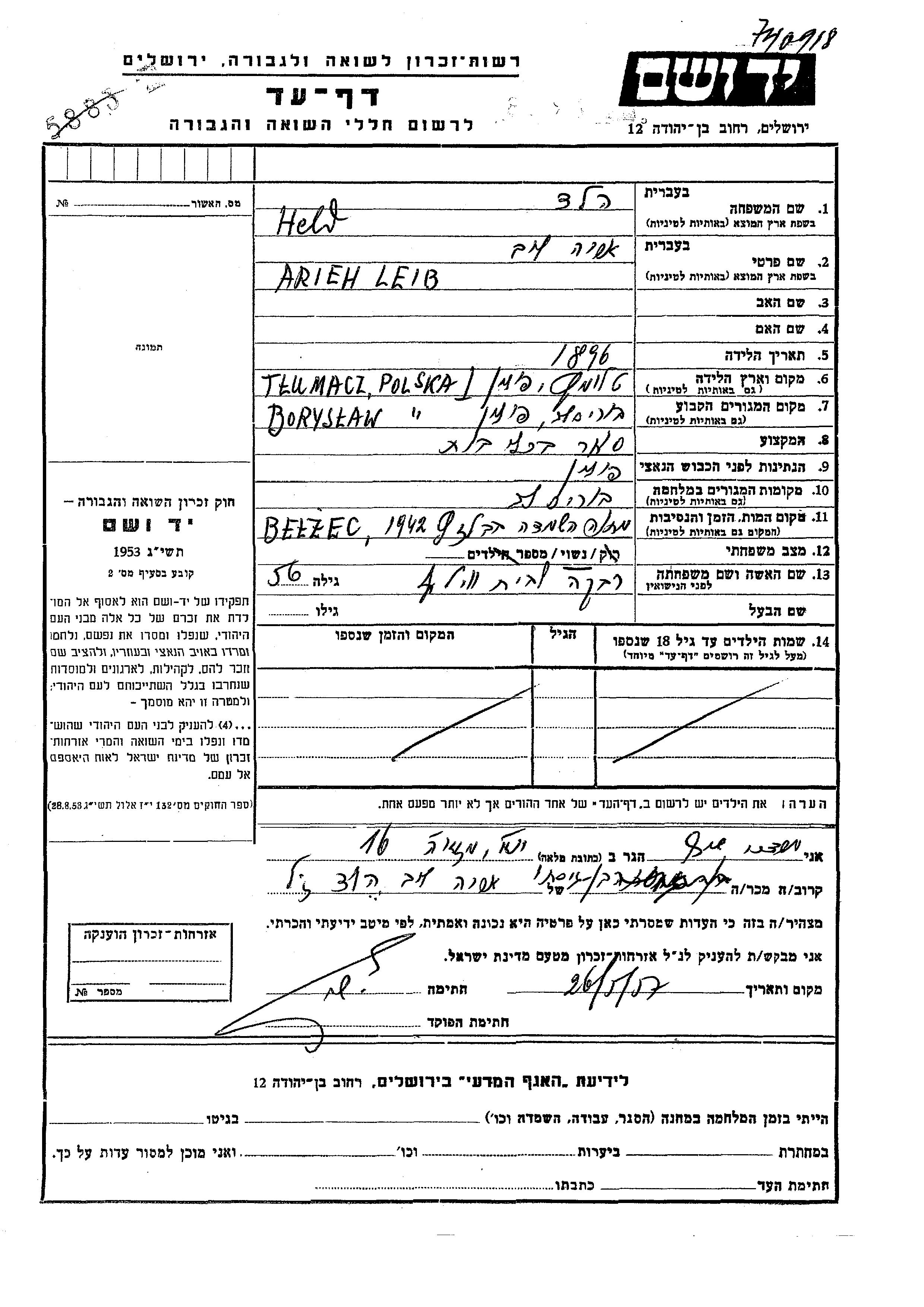 Arieh Leib wurde in der Schoah ermordet. Todesort: Belzec, Polen im Jahr 1942.