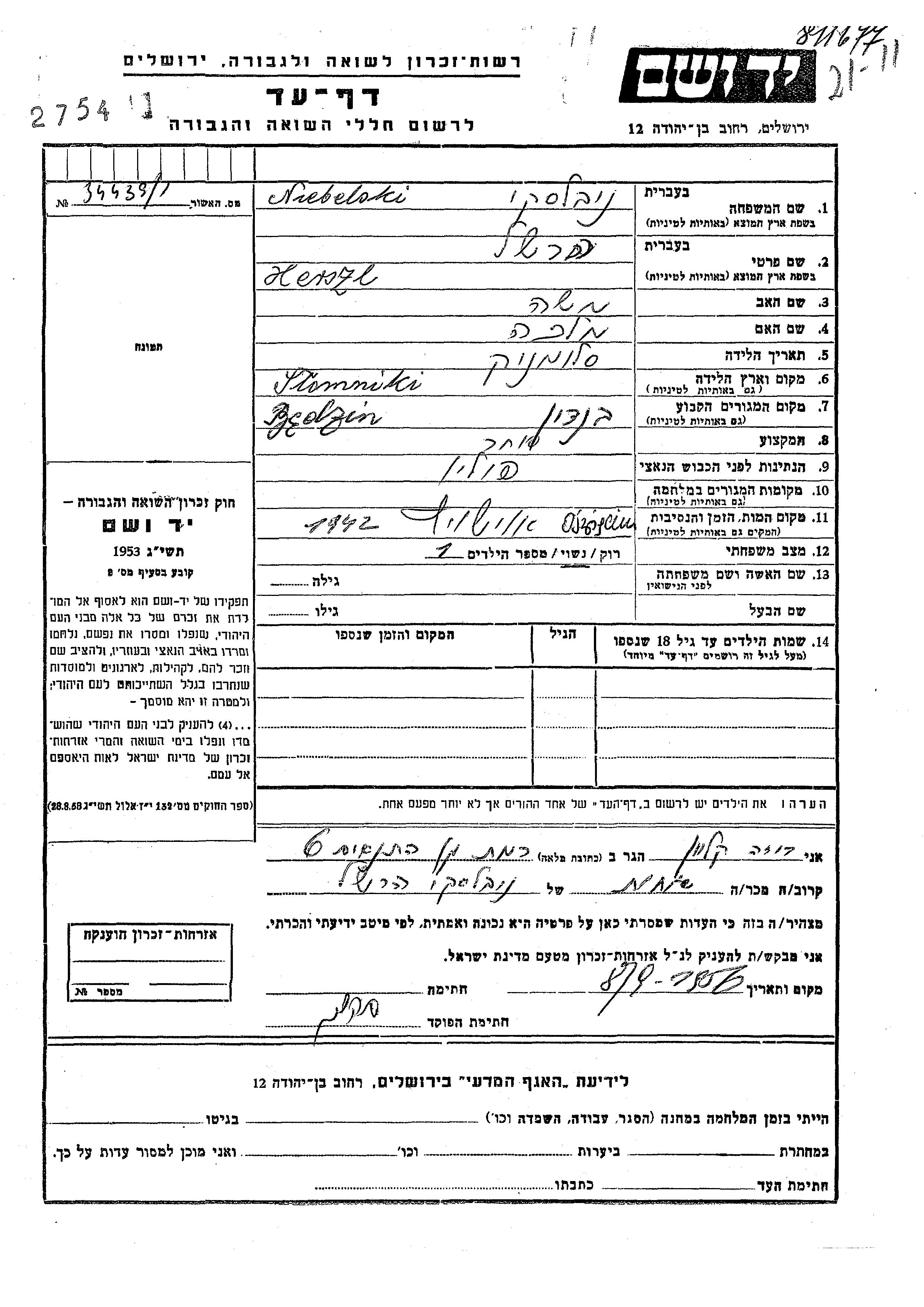Herszl Niebelski wurde in Slomniki, Polen geboren. Er war der Sohn von Moshe und Malka. Er war Kaufmann/-frau und Verheiratet. Vor dem Zweiten Weltkrieg lebte er in Będzin, Polen.