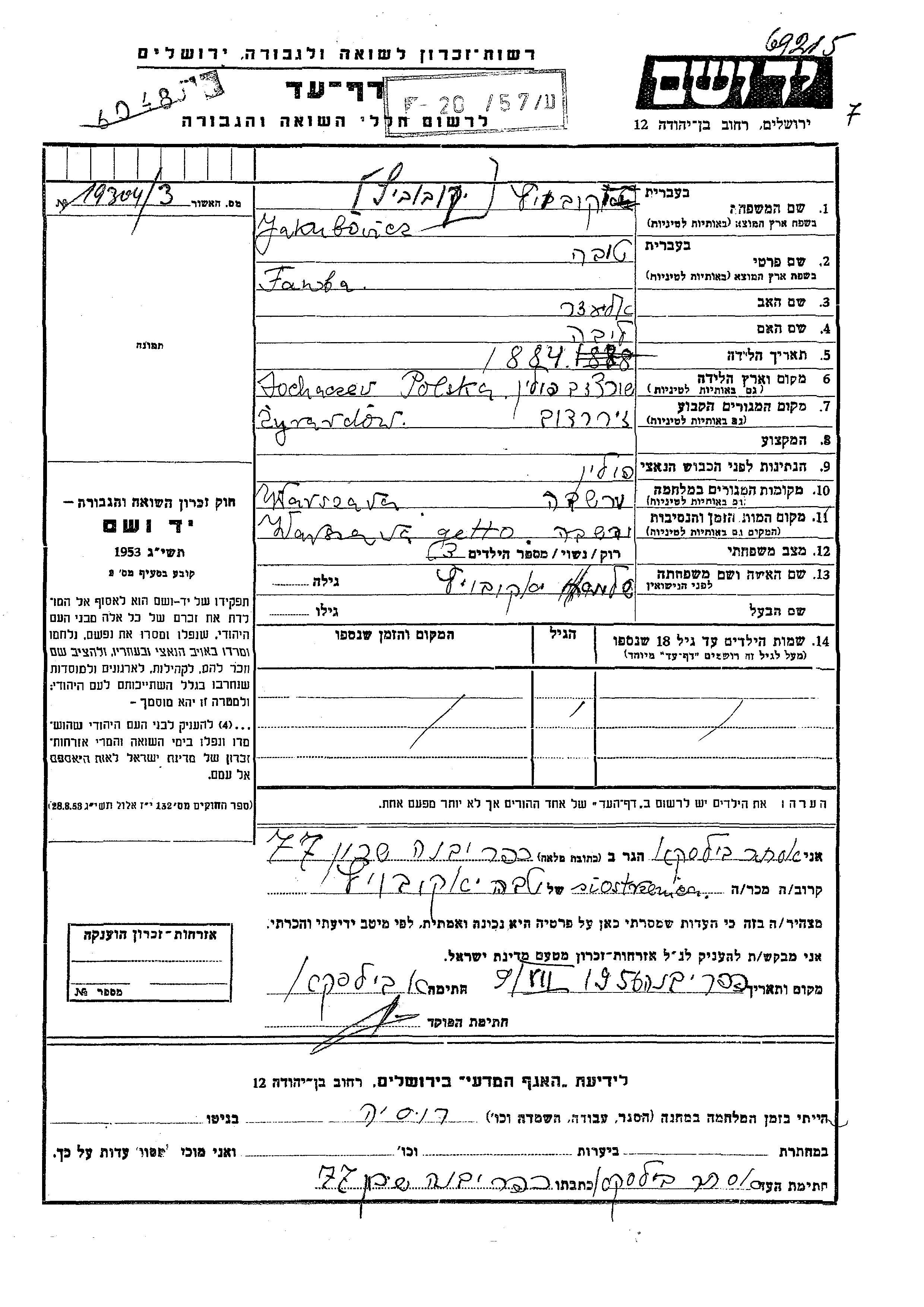 Tawba Tova wurde in der Schoah ermordet. Todesort: Warsaw, Polen.