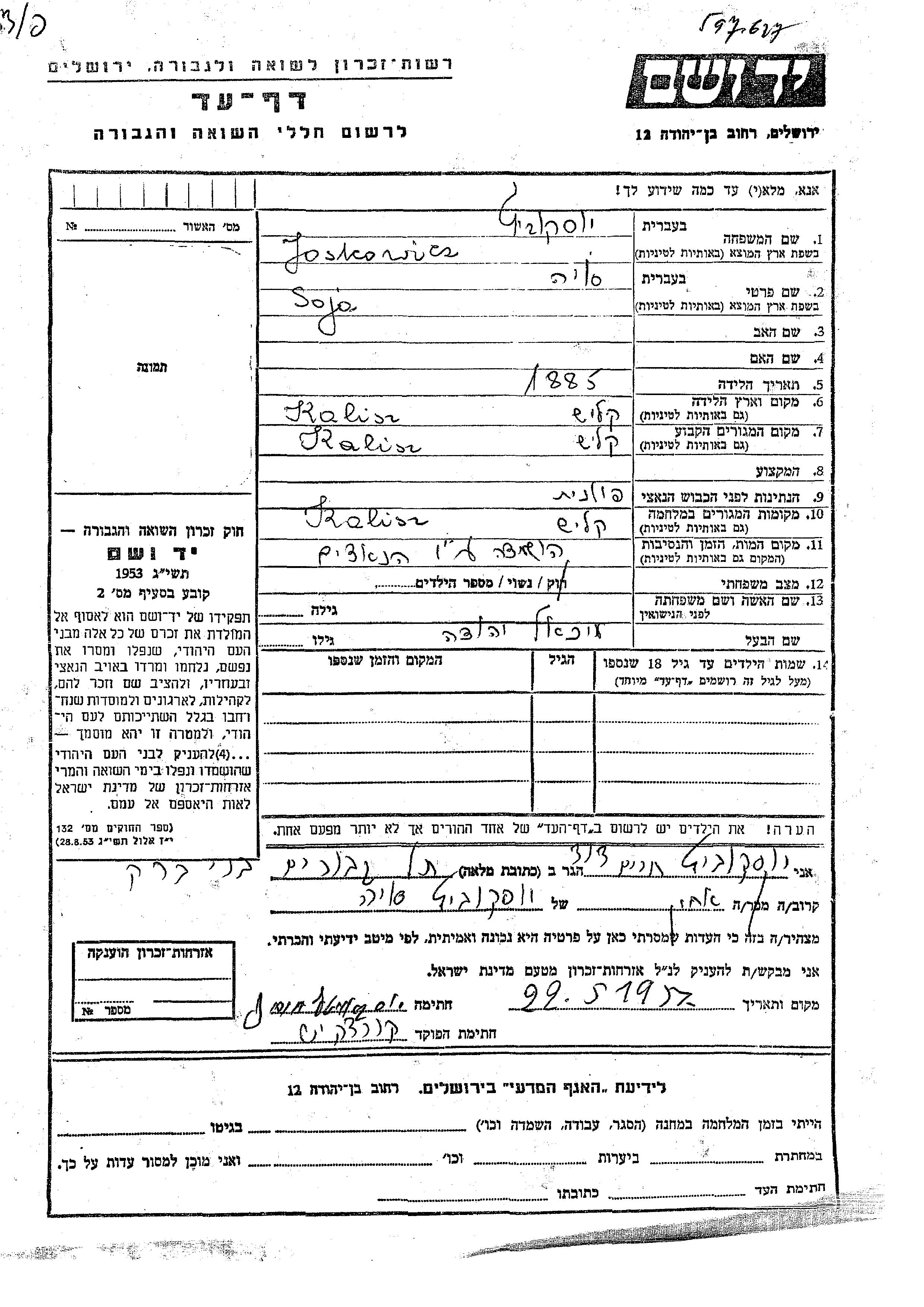 Joskowicz Soja 1885 Kalisz, Polen Gedenkblatt