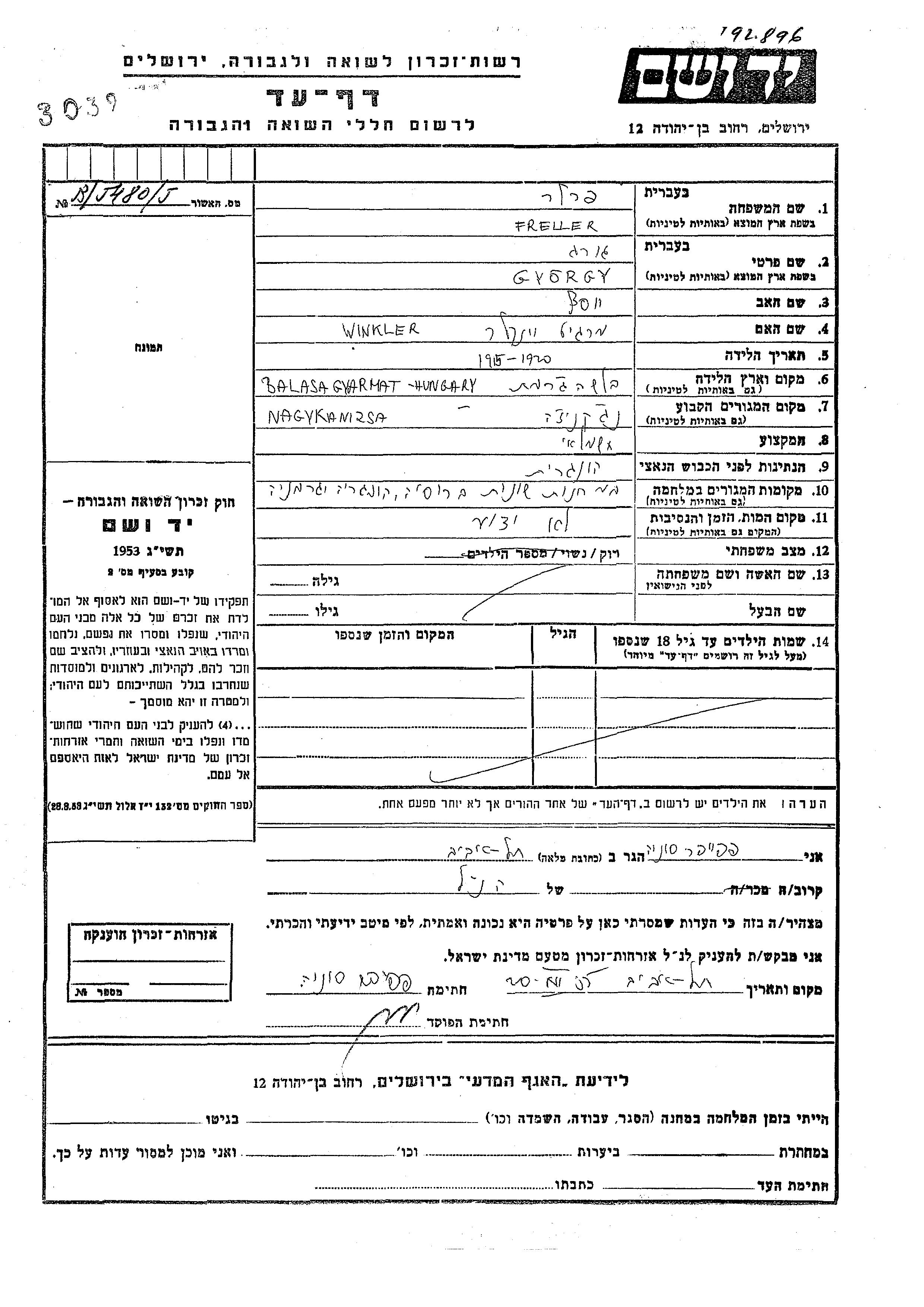 Gyorgy Freller Perler wurde im Jahr 1915 in Gyarmat, Ungarn geboren. Er war der Sohn von Yosef und Margit. Er war Elektriker/-in und Ledig. Vor dem Zweiten Weltkrieg lebte er in Nagykanizsa, Ungarn.