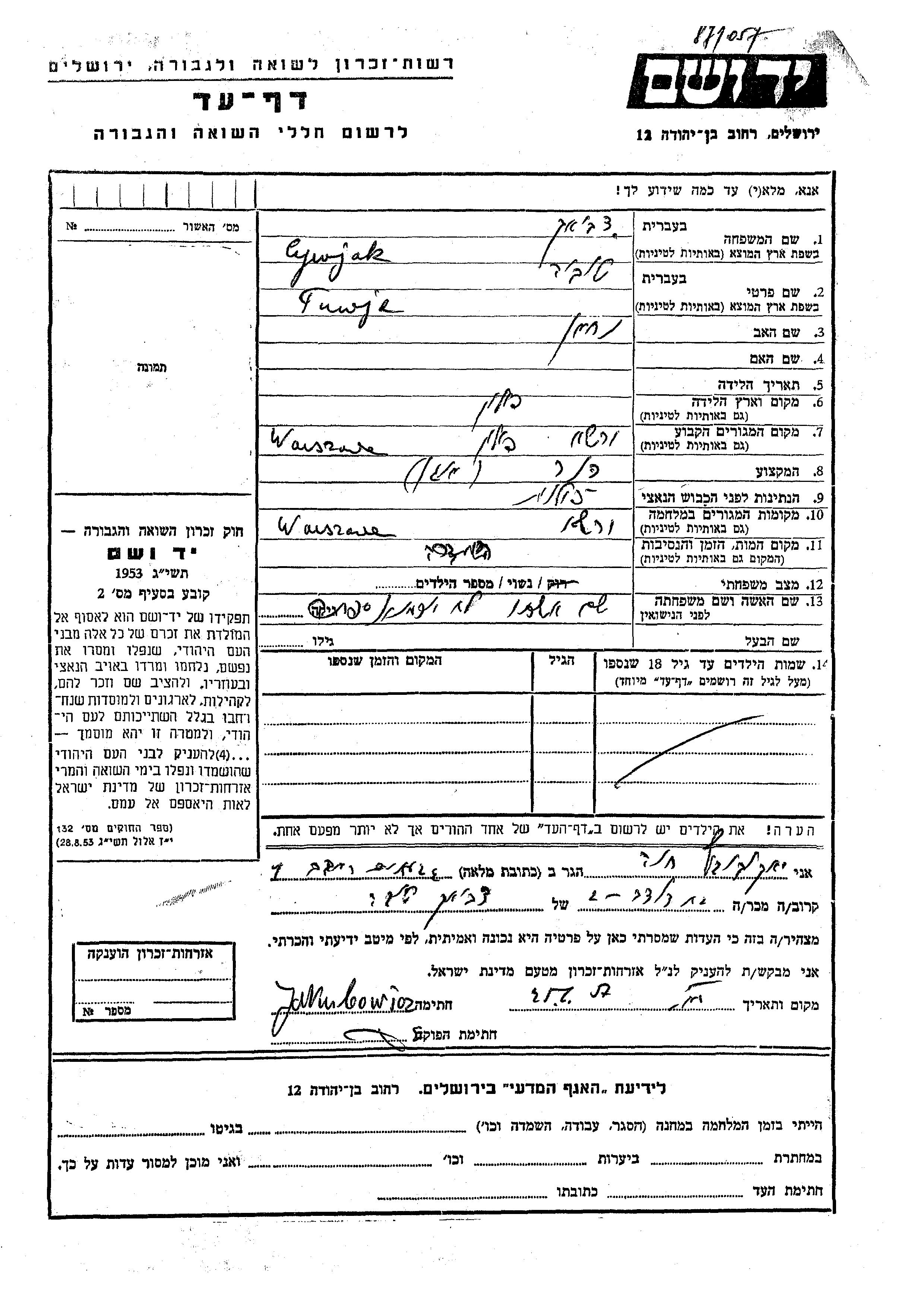 Cywjak Tuwja Warszawa, Polen Gedenkblatt
